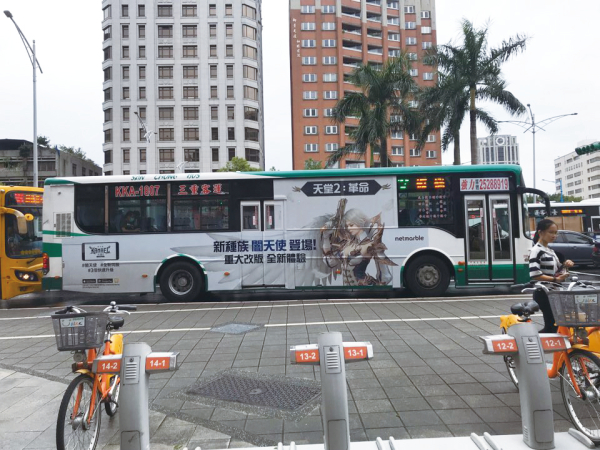 대만에서 가장 자주 볼 수 있었고, 매우 신선하게 느껴진 광고는 옥외(OOH) 광고였다. 특히 대만의 버스는 ‘돌아다니는 매체, 그 자체’라고 느껴질 정도로 차원이 달랐다. 일반적으로 우리나라의 버스 외부광고는 5면 광고로 제한되어 있다. 그러나 대만의 버스광고는 ‘면’의 형태를 완전히 벗어나 버스 전체를 포장하고 있어 확실히 우리나라보다 규모감 있고 임팩트가 강했다. 다른 옥외 매체도 상당히 규모가 컸는데, 한 지하철역은 통로 벽면 전체를 광고판으로 활용하기도 했다.