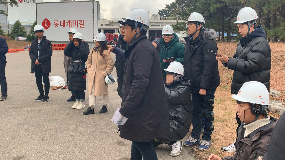 원데이 촬영으로 진행된 이번 캠페인의 모든 스태프는 새벽 4시, 충남 서산에 위치한 롯데케미칼 대산 공장에 집합해야 했습니다. 공장 출입을 위해 촬영팀 전원이 안전 교육을 철저히 이수하고, 안전모도 처음 써봤죠. 거대한 규모의 공장 설비도 놀라웠습니다. 해가 비치다 비가 내리는 변덕스러운 날씨 속에서 첫눈을 맞기도 했죠. 쉽게 접할 수 없는 대한민국 화학 발전의 중심지에 서 있으니 그 어떤 촬영장보다 감회가 남달랐습니다.