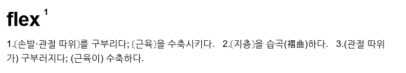 한국에선 염따(래퍼라고 함. 개인적으로 노래를 들어본 적은 없음. 플렉스 때문에 알게 됐음.) 등 연예인들이 SNS에 “~해버렸지 뭐야” 같은 말투를 곁들이며 유행하기 시작했다. 뭐 그전에 누군가 또 했을 거 같기는 한데, 그것까진 모르겠다. 아, 도끼가 먼저 했다. 집 자랑 차 자랑하는 거, 그게 다 플렉스다. 아무튼, 대략 이런 식으로 소비되고 있다. “천오백만 원짜리 롤렉스를 사버렸지 뭐야” “고장 낸 친구 벤틀리를 고쳐주려다가 그냥 내가 탈 벤틀리를 사버렸지 뭐야.” 그런데 플렉스(flex)의 원래 뜻은, 음, 사전 찾아보면 나오니까 각자 찾아보면 되겠다. (“오, 나는 심지어 단어로 플렉스를 해버렸지 뭐야~”).