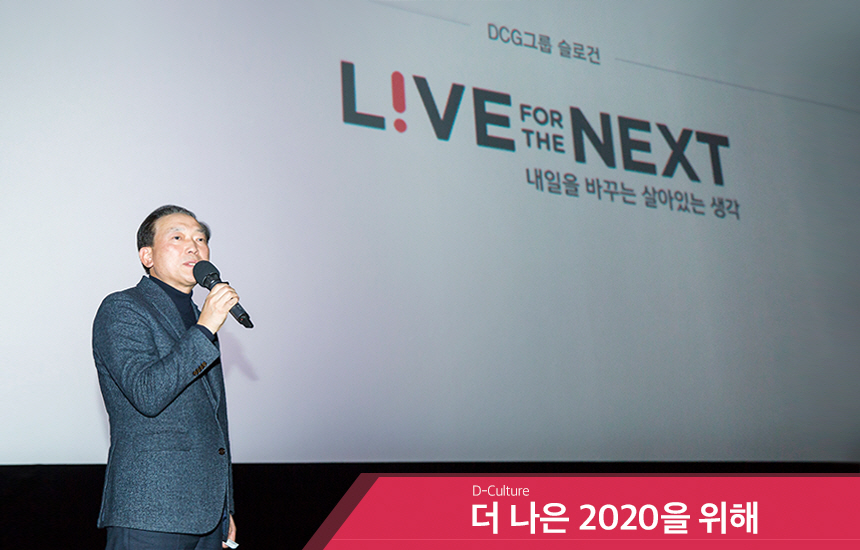 2020년 1월 9일, 대홍기획 임직원이 서울극장에 모였습니다. 2019년의 성과를 돌아보고 2020년의 목표와 비전을 확인하기 위해 <2020 L!VE for the NEXT> 신년행사를 개최한 것입니다. 450명의 임직원이 따뜻한 커피 한잔을 받아들었고, 캠페인 영상 시사로 행사가 시작됐습니다.