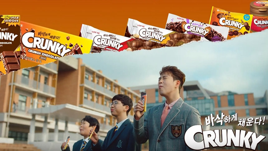 봄과 함께 설렘 가득한 발렌타인데이가 있는 2월. 롯데제과가 크런키의 대대적인 광고 캠페인을 시작했습니다. 달콤한 초콜릿에 뻥쌀이 함유되어 특유의 식감을 자랑하는 크런키는 출시 이후부터 지금까지 꾸준하게 ‘바삭함’을 메시지로 커뮤니케이션 해왔습니다. 인기 아이돌을 활용한 <Crunky the Rule> <바삭고>에 이어 작년 캠페인에서는 바삭함을 넘어 중독성 있는 ‘단짠’맛까지 어필했습니다.