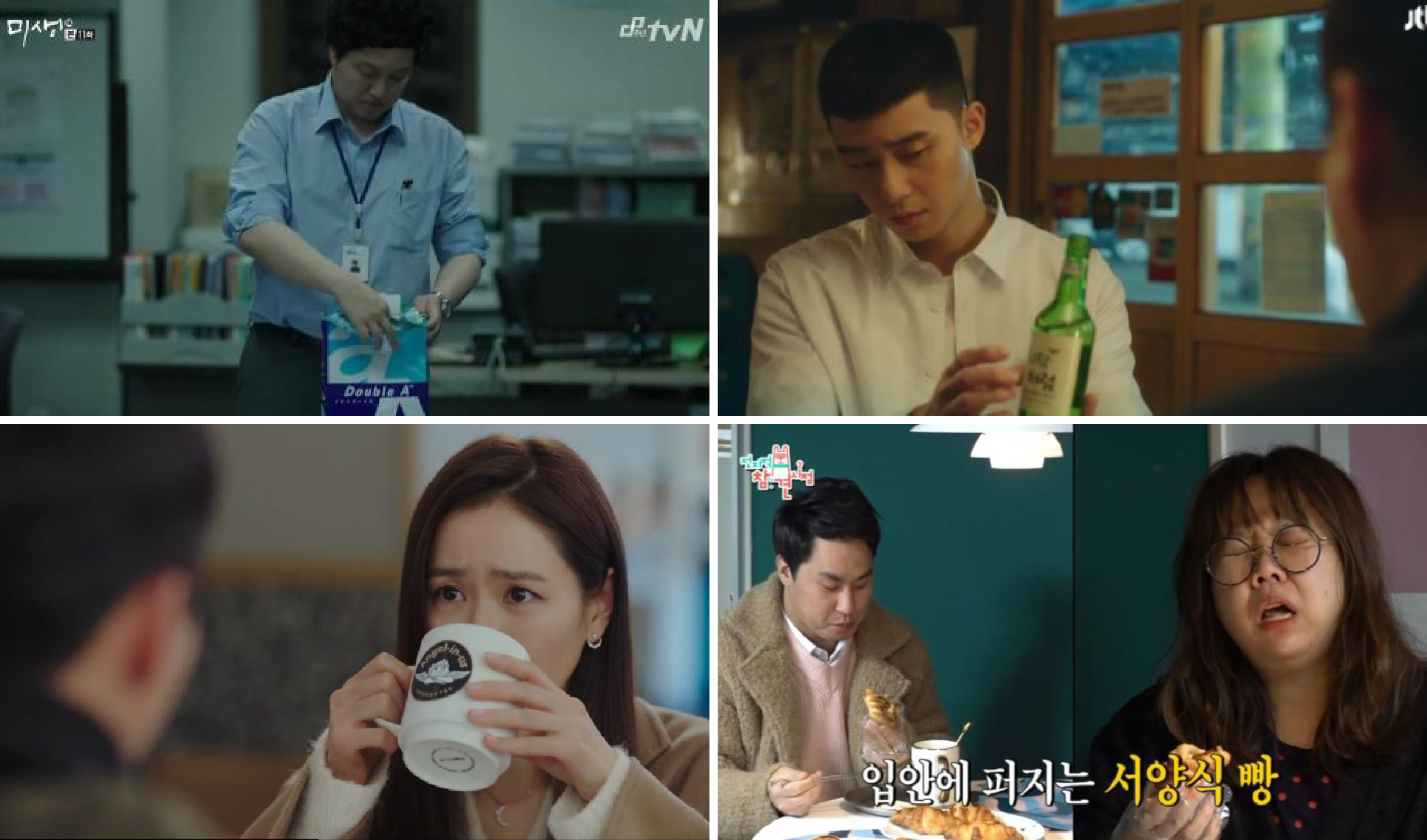 드라마 <미생> 속에 등장하는 사무용 복사용지 PPL. 직장을 배경으로 한 드라마이기 때문에 화면에 자연스럽게 어울린다. 이렇듯 자연스러운 PPL이 광고효과가 좋은 것은 당연하다. 물론 컨텐츠 자체의 인기가 있어야 하지만 그 속에 자연스럽게 녹아든 PPL의 효과는 당연히 높아진다. 성공적으로 노출된 제품을 찾는 글은 이후 SNS에서 어렵지 않게 찾아볼 수 있다.