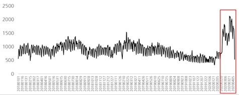 대홍기획은 코로나19로 인한 일상의 변화를 추적하기 위해 자체 보유 소셜 빅데이터 분석 솔루션인 디빅스 2.0(D-BIGS 2.0)을 통해 2018년부터 3년간 1분기(1~3월)에 발생한 소비자 온라인 버즈를 비교·분석했다. 그 결과 온라인상에서 ‘일상’이라는 키워드의 언급량이 2018년 1,458만여 건, 2019년 1,389만여 건에 비해 2020년 1분기에는 무려 46% 감소한 746만여 건에 그치는 것으로 나타났다.