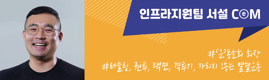 나의 중심을 잡아줬다는 느낌? 정신적으로 나약해지지 않고 바른길을 걷게 하는 힘? 운동을 통해 잘 성장할 수 있었다고 생각합니다. 직장생활에도 도움이 돼요. 기초 체력과 업무 집중 시간, 강도는 정비례하거든요. 웬만큼 짜증나는 일도 대수롭지 않게 넘길 수 있죠.