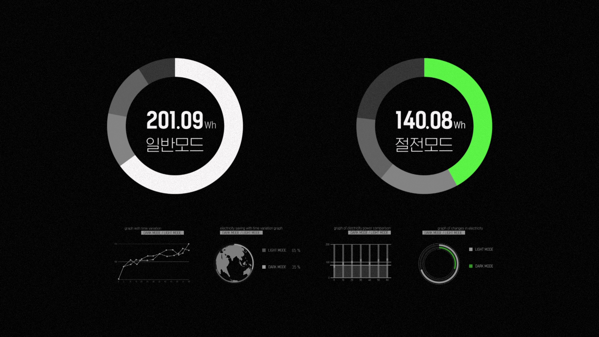 최근 스마트폰부터 포털사이트까지 전력소모를 줄이는 ‘다크모드’가 대세입니다. 대부분 스마트폰과 최근의 TV 역시 OLED 기술력을 경쟁적으로 알리고 있죠. 기존에 여러 가지 색을 섞어 표현하던 LCD 화면과 달리, OLED에서는 검정색 화면을 LED 발광소자 자체를 아예 꺼서 표현하기에 흰색 화면 대비 전력소모가 최대 1/6까지 줄어든다는 연구 결과가 있습니다. 이에 착안해 광고를 만들면 실제 광고가 노출되는 동안은 타 광고 노출 시보다 전력소모를 줄이는 친환경을 실천할 수 있습니다. 우리는 이를 어릴 적 많이 보아온 PC 절전모드시 발생하는 윈도우OS 화면보호기 컨셉에 적용하기로 했습니다.