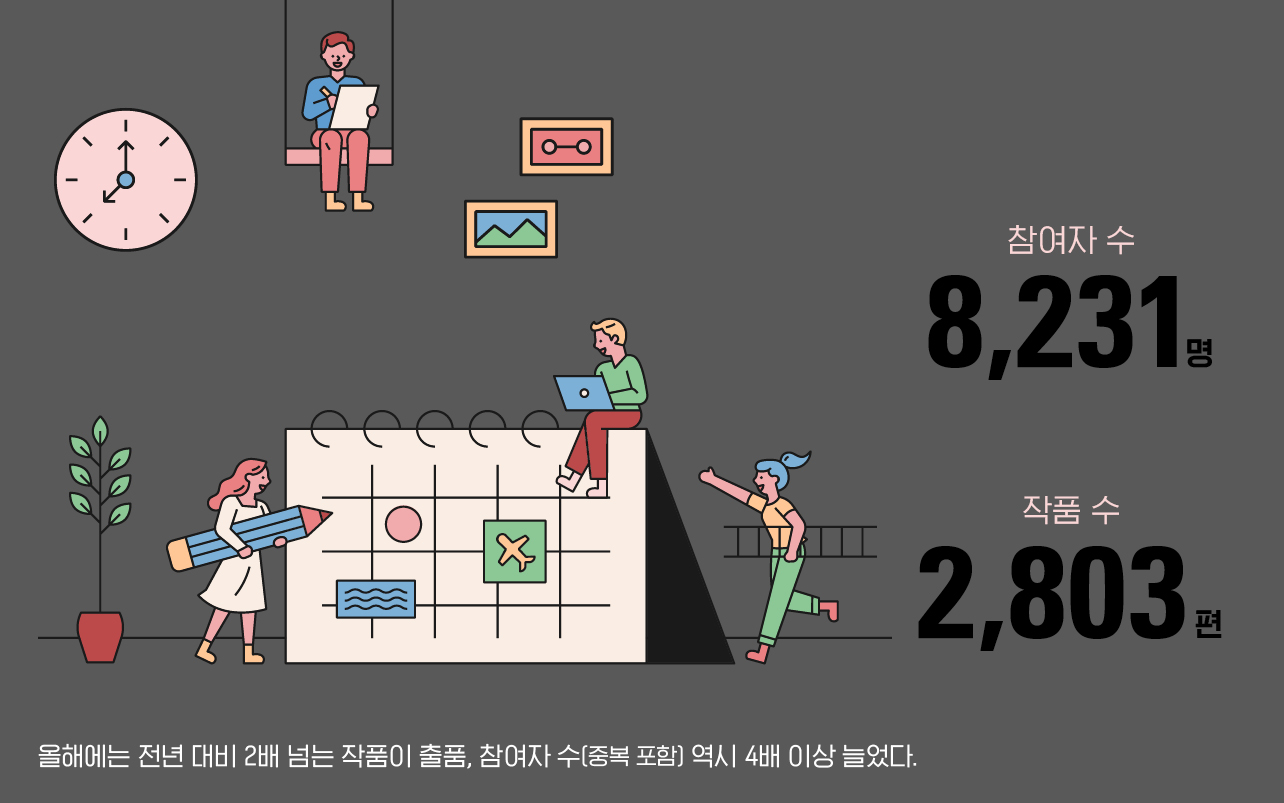 팬데믹으로 인한 언택트 상황에서 진행된 공모전이었지만 학생들의 열정과 아이디어는 어느 해보다 돋보였습니다. 많은 작품이 코로나19로 인해 멈춰버린 시간에 대한 회한과 아쉬움, 불안을 잘 녹였고 비대면으로 시도할 수 있는 아이디어를 잘 승화시켰습니다. 브랜드 네임을 살린 동음이의어 등 재기발랄한 언어유희도 다수 등장했습니다.