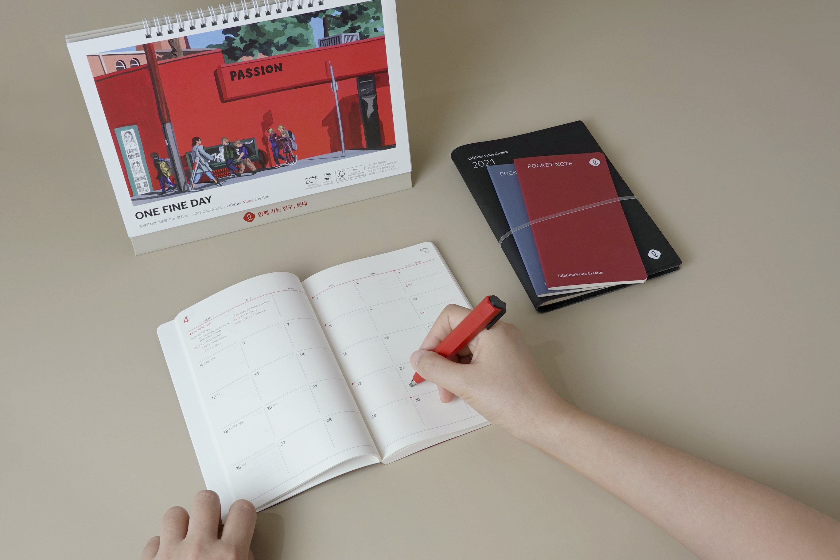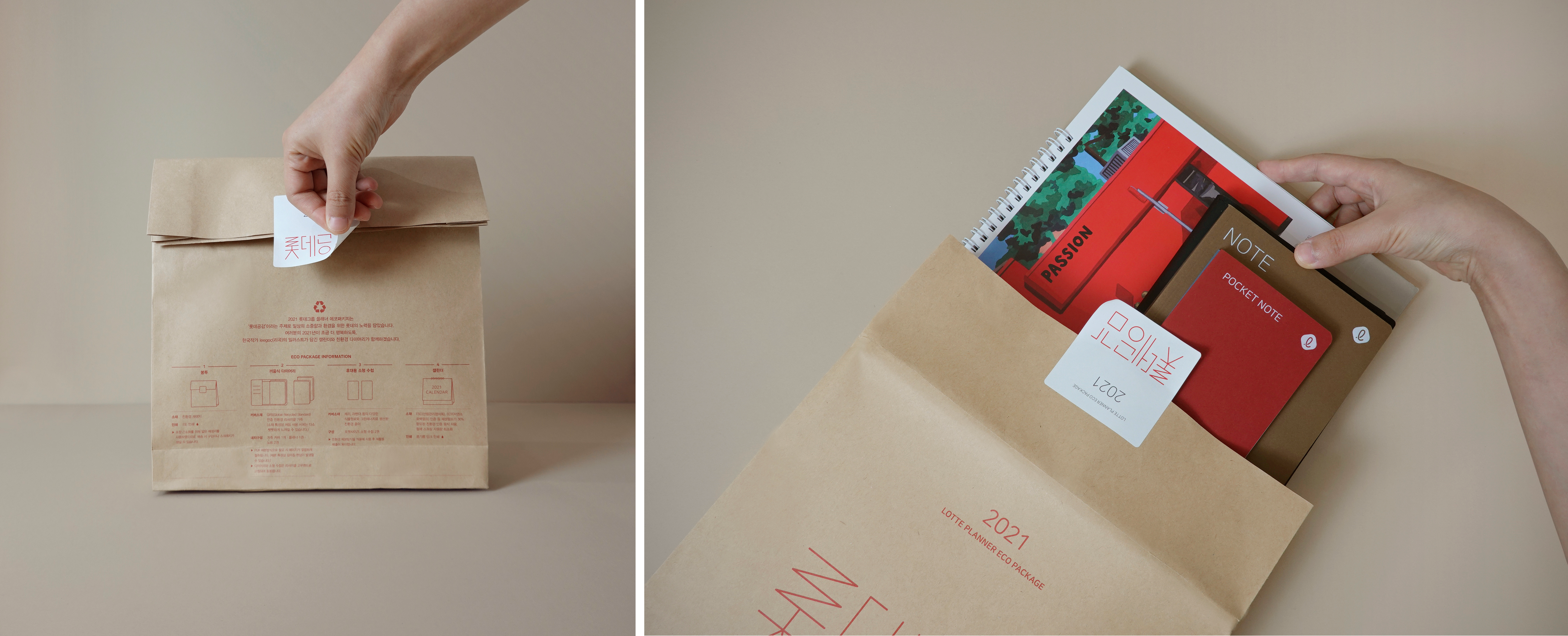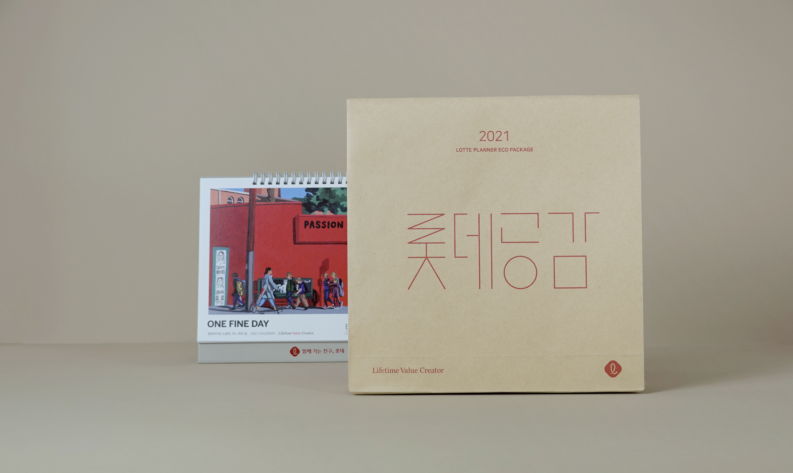 매해 12월, 롯데 전 그룹사에 배포되는 롯데 플래너 에코패키지가 2021년을 맞아 새롭게 탄생했습니다. 한 해를 강타한 코로나19로 다시 본 일상의 소중함을 기억하고, 환경을 향한 롯데의 노력을 담고자 최초로 ‘롯데공감’이라는 컨셉이 적용됐습니다. 해를 거듭하며 변화하는 롯데 플래너 에코패키지가 기대하는 2021년은 그래서 더 특별합니다.