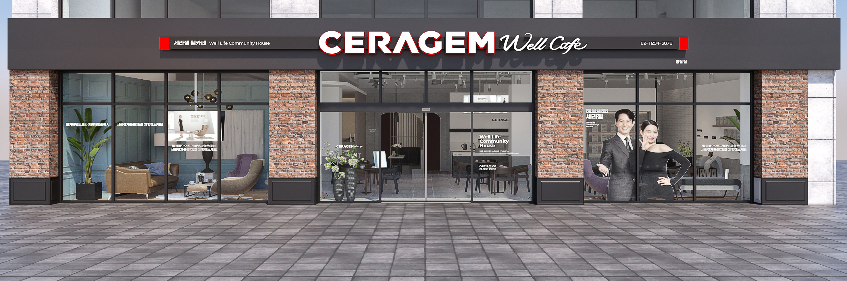 그밖에 세라젬의 건강식품을 홍보하는 세라메이트 VMD 공간, 제품 카탈로그 거치대, 그리고 고객에게 편안한 안내를 돕는 모든 그래픽 사이니지에 플랜을 세워 세라젬 통합 브랜드가 고객에게 잘 전달될 수 있도록 디자인했습니다.
