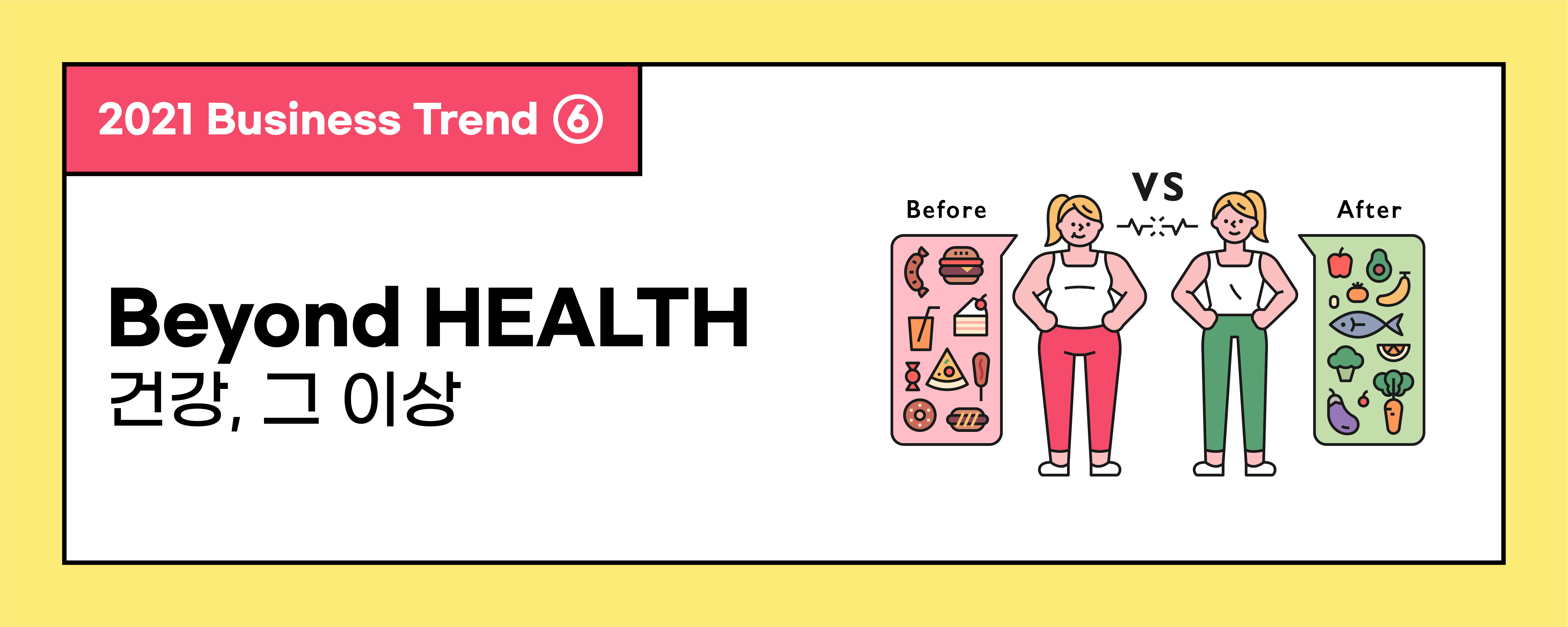 생존 불안에서 시작된 건강에 대한 관심은 위생과 면역 등 바이러스와 직접적으로 연관된 부분은 물론 의료, 건기식, 푸드, 뷰티를 넘어 멘탈케어에 이르기까지 다양한 수요와 서비스가 탄생하는 동력을 제공한다. 코로나 이후 심화된 건강에 대한 염려는 특히 40~50대에서 실질적인 구매 행동으로 연결될 전망이다. 반면 수면과 같이 스트레스나 정신적 건강과 유관한 영역에 대해서는 젊은층에 더욱 기회가 있을 것으로 보인다.