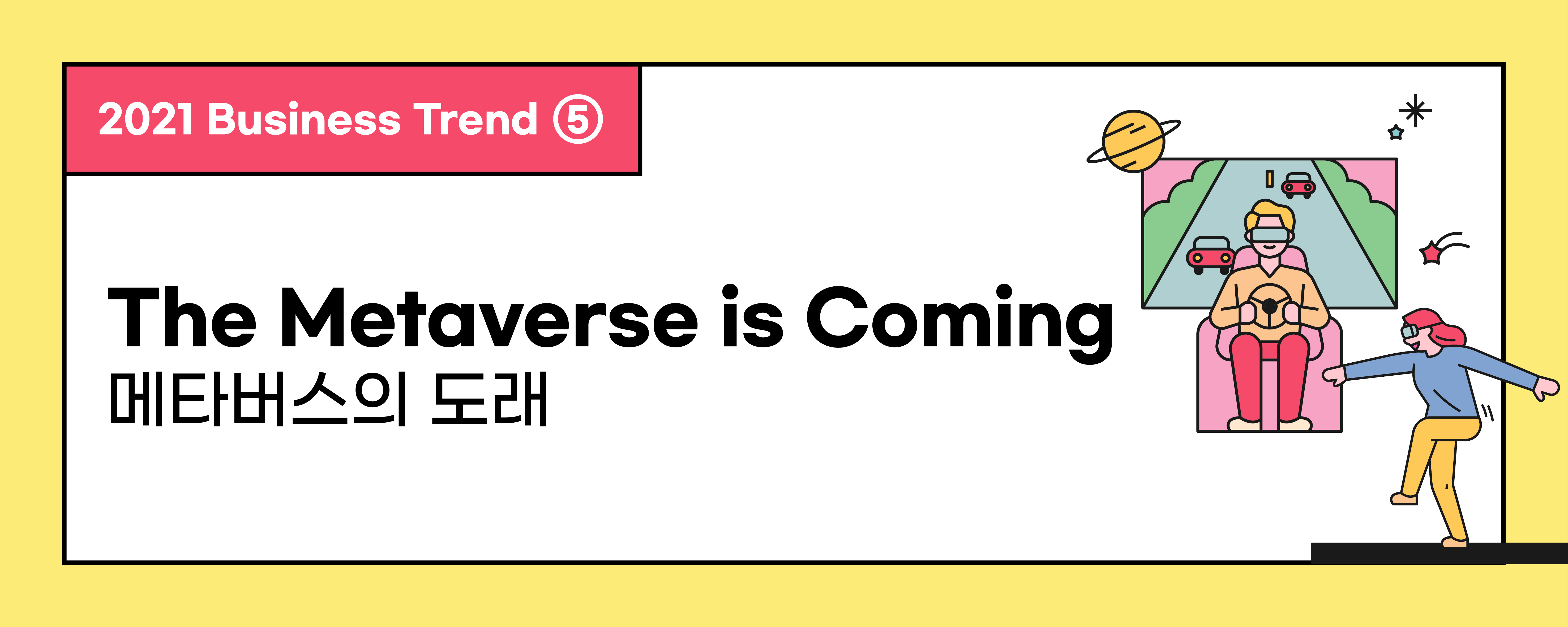 격리와 고립, 폐쇄가 일상이 됐지만 사람 간의 직접적 소통에 대한 욕구는 여전히 존재한다. 떨어져 있지만 함께 있는 것 같은 감각, 또 다른 세상에서 아바타를 매개로 접촉하고 모이는 즐거움, 바로 메타버스다. 메타버스의 개념은 아직 뚜렷하게 확립된 바는 없으나, 각종 기사나 논문에서 언급된 내용을 종합하면 “‘가상 공간’에서 ‘아바타’를 활용해 실제 생활처럼 ‘상호작용’할 수 있는 또 다른 세계”라고 정리할 수 있다. 게임 세계에서 가장 먼저 실현됐던 메타버스가 게임 외 비즈니스와 일상으로 확산될 조짐이 나타나고 있다. 온라인 게임 포트나이트의 가상공간에서 BTS의 새로운 뮤직비디오가 최초로 공개되고, 일본에서 ‘버츄얼 출근(재택근무 중 구성원 간 소통과 접촉을 위해 가상 사무실에 직원들의 아바타가 출근해 만나고 소통하는 것)’의 개념이 대두되는 사례를 들 수 있다.