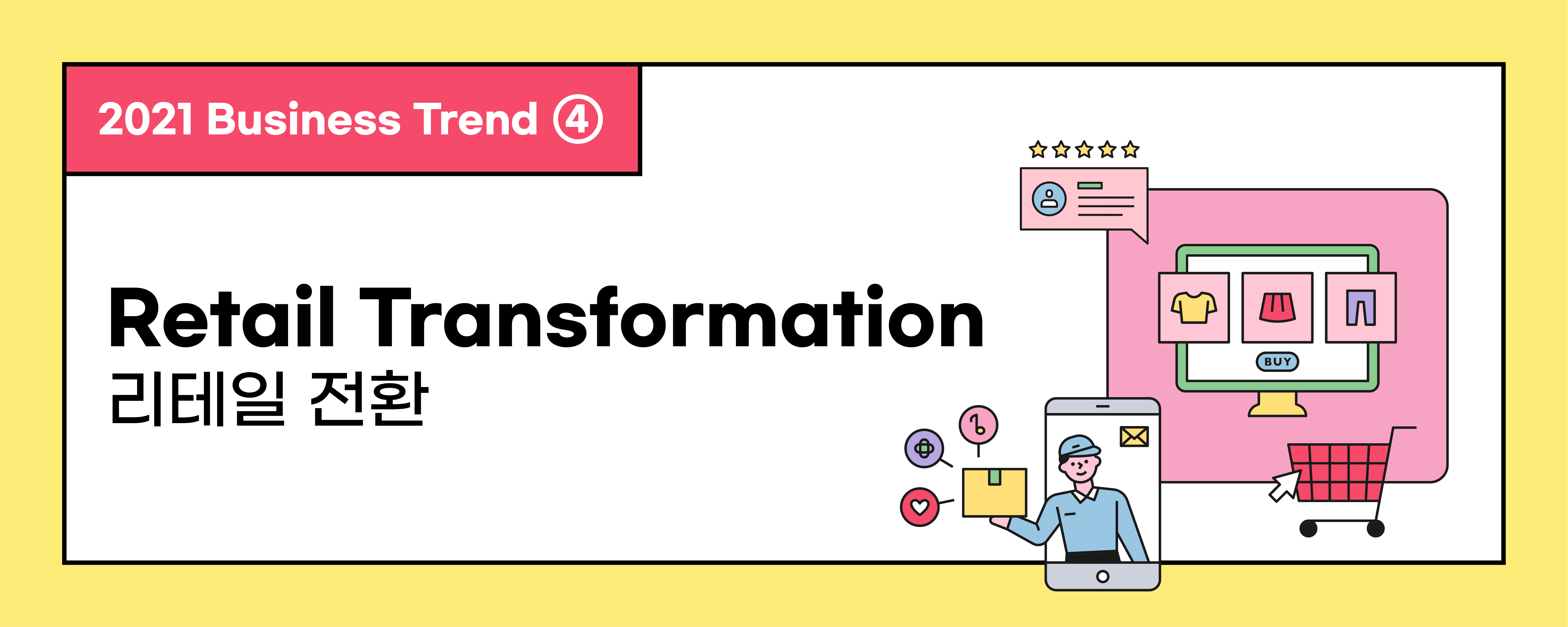 리테일 전환은 단순히 온라인몰을 구축하는 데 그치지 않는다. 온/오프라인 매장과 자원을 매끄럽게 통합하고, 판매자와 소비자가 대면 방식뿐 아니라 디지털 수단으로도 문제없이 연결되는 리테일의 근본적 속성을 변화시키는 작업이 본격화될 전망이다. 온/오프라인 구분은 메이커적 사고방식일 뿐, 소비자에게 온라인과 오프라인은 별개가 아니다. 기술의 발전이 물리적 세계와 디지털 세계의 경계를 이미 허물어버린 까닭이다. 디지털 경험을 장착한 오프라인(Phygital, 피지털), 온/오프라인의 끊김 없는 자연스러운 연결(Omni-channel, 옴니채널), 결국 관건은 소비자에게 더 편하고 자유로운 쇼핑 경험을 제공하는 것이다.