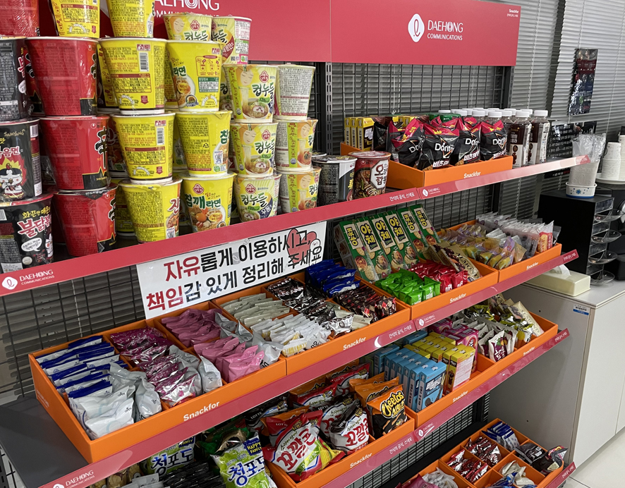 대홍기획은 최근 구독 서비스와 개인별 큐레이션이 지속적인 트렌드로 자리 잡음에 따라 지난 17일 임직원 복지를 위한 간식 큐레이션 제도를 도입했다. 간식 큐레이션은 사무실에 스낵바와 냉장고를 설치해 직원들의 다양한 기호에 맞춰 100종류 이상의 간식을 상시 제공하는 제도다. 대홍기획은 감염병으로 비대면 업무가 일상화되는 가운데 맞춤형 간식 제공으로 회사생활에 활력소를 제공하고, 개인방역 차원에서 간편한 식사를 선호하는 임직원을 위해 이러한 제도를 도입했다.