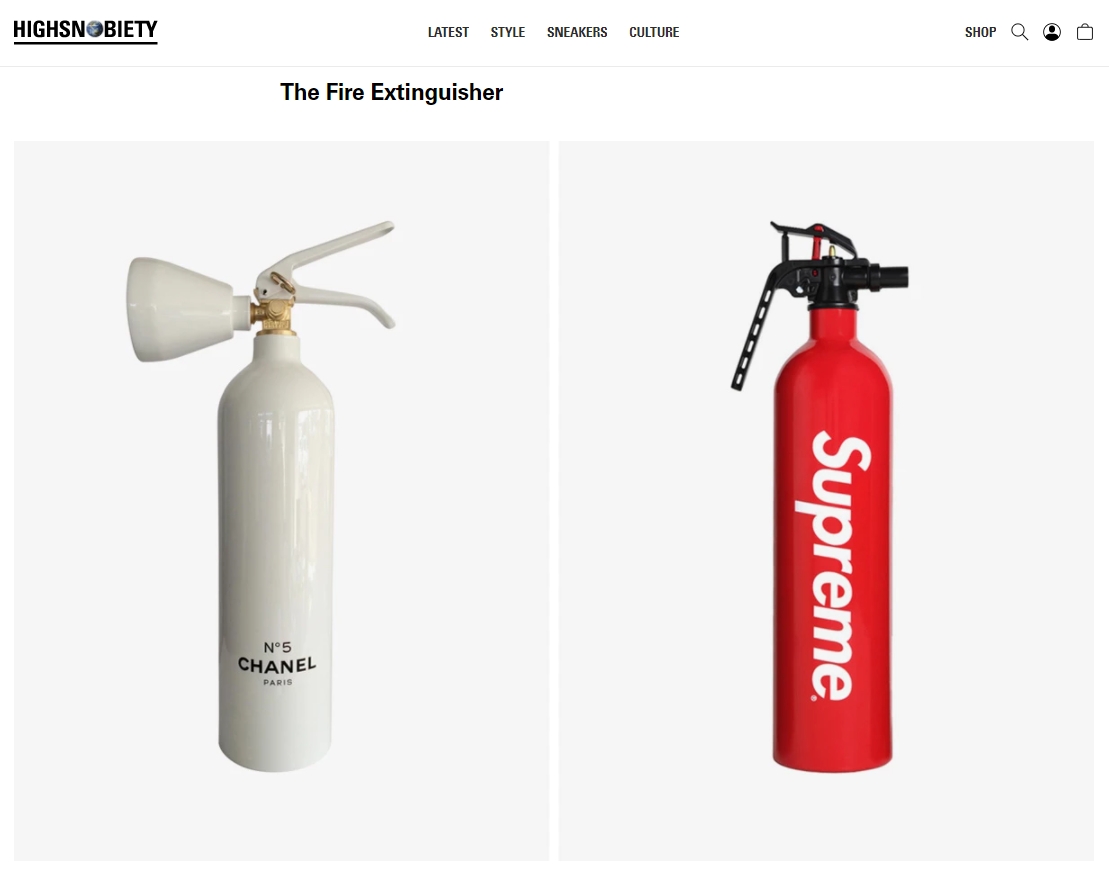 21세기의 문제적 브랜드 슈프림. 벽돌, 젓가락, 도끼, 성냥 등 쓸모없어 보이는 물건에 브랜드 로고를 붙여 단 몇 초 만에 완판을 기록하는 등 한정판 마케팅에서 빼놓을 수 없는 브랜드다. 슈프림 창립자 제임스 제비아(James Jebbia)는 실제로 샤넬에서 큰 영감을 얻었다고 고백했다. 샤넬이 디자이너의 소화기를 고가에 판매한 프로모션에서 영감을 받아 3년 후 이와 유사한 슈프림 소화기를 발표하며 한정판 게임을 시작한다.