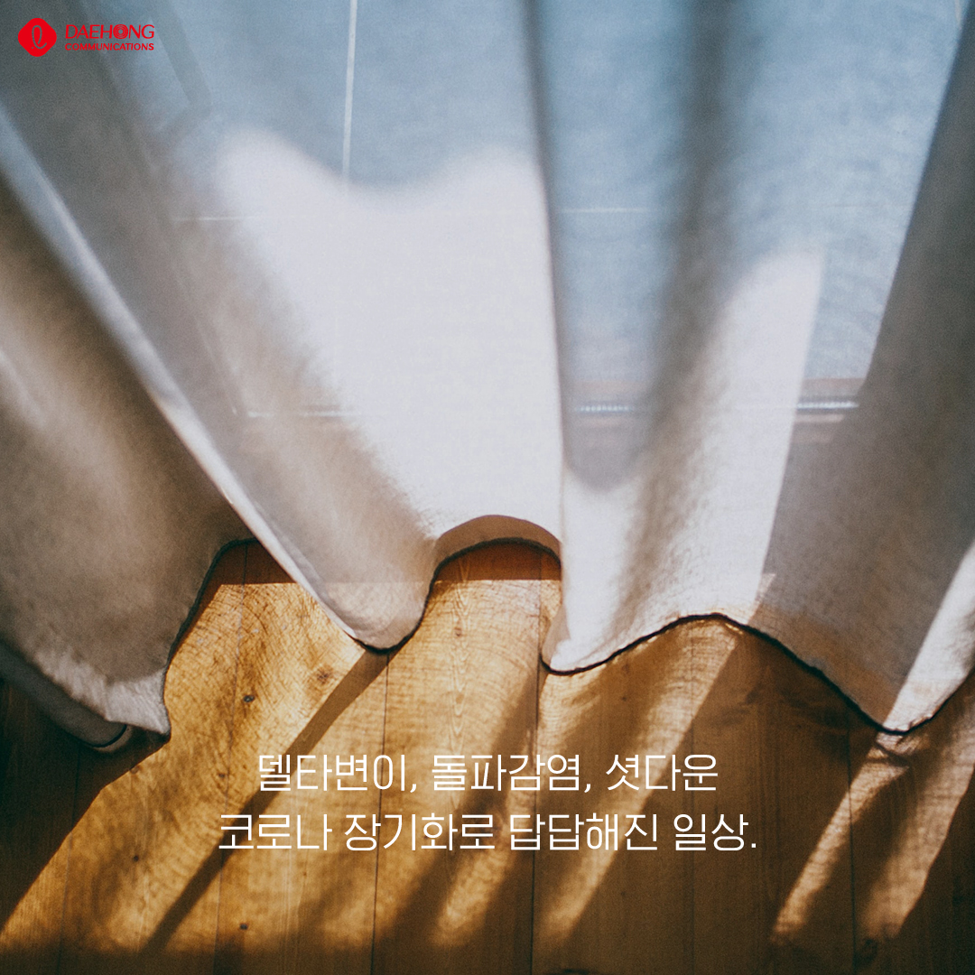 DIGGING/Trend 여유롭고 포근하게 Daehong 2021. 8. 18. 14:48 공유하기 게시글 관리 대홍기획 매거진입니다. 저작자표시 비영리 변경금지 (새창열림) 'DIGGING > Trend' 카테고리의 다른 글 편의점에 가면 (0) 2021.09.13 모두의 골프 (0) 2021.08.23 취향 중심의 삶 (0) 2021.07.23 슬기로운 짠테크 생활 (0) 2021.07.20 뇌에 휴식을 (0) 2021.06.21 'DIGGING/Trend' Related Articles 편의점에 가면 모두의 골프 취향 중심의 삶 슬기로운 짠테크 생활