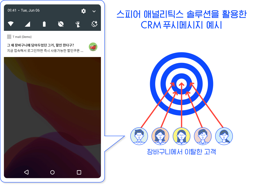 장바구니에 물건을 담았지만 구매하지 않고 이탈한 유저들을 대상으로는 CRM, 개인화 마케팅을 통해 접점을 다시 만드는 전략이 적합하다. ‘장바구니에 담았던 그 상품’을 리마인드 해주는 메시지를 앱 푸시나 카카오톡 등으로 해당 고객에게 전송하면 구매 전환율이 크게 증가하는 것을 확인할 수 있다.