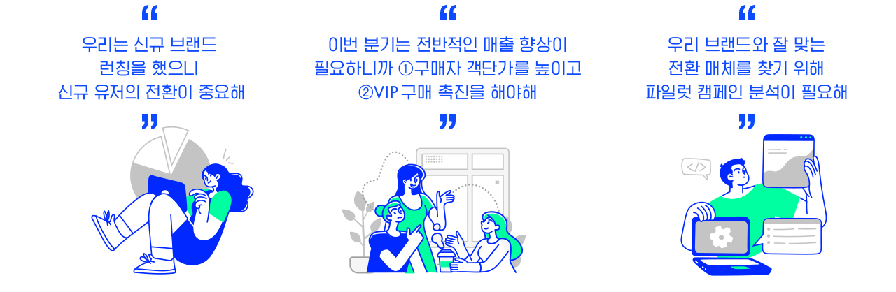 브랜드 전환 목표에 맞는 퍼널을 구성했다면 이제 데이터 분석을 기반으로 실제 마케팅 액션에 적용할 차례다. 이때 중요한 전략은 ‘즉시성과 반응성’이다. 즉 각 단계별 소비자에게 딱 맞는 시점을 포착하고, 그때 고객이 가장 잘 반응할 메시지를 전달해 바로 행동의 방향을 바꾸는 것이다. 이처럼 반응성이 높은 마케팅 커뮤니케이션을 실행하기 위해서는 고객의 행동 분석을 기반으로 마케팅 액션을 수행할 수 있는 데이터 솔루션이 필수적이다.