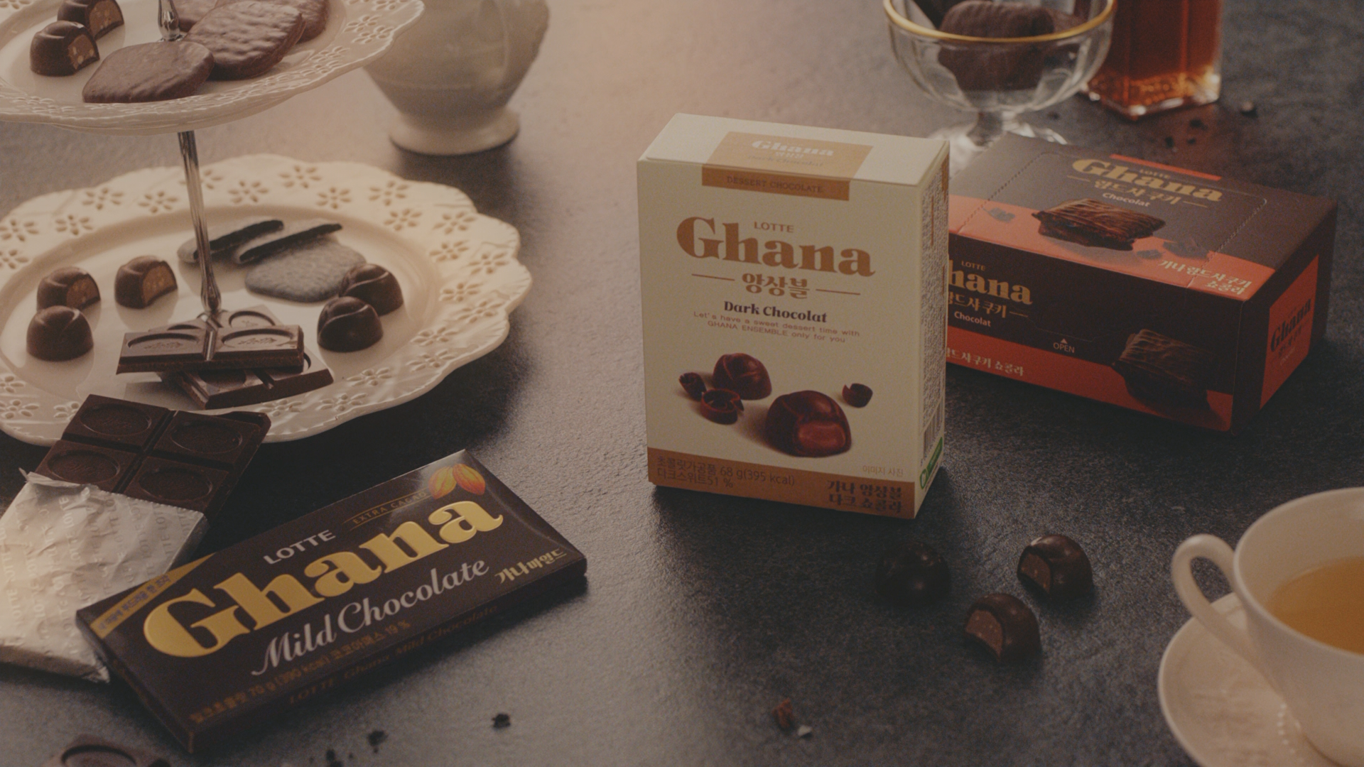 디저트 초코로서 첫 발걸음을 뗀 가나. 지난 광고 캠페인에서는 가나만의 디저트 감성을 소비자에게 전달하는 것이 과제였습니다. 이번에는 더 고급스럽고 세련된 디저트 초코로 거듭난 가나만의 감성과 분위기를 전달하는 것이 최우선이었습니다.