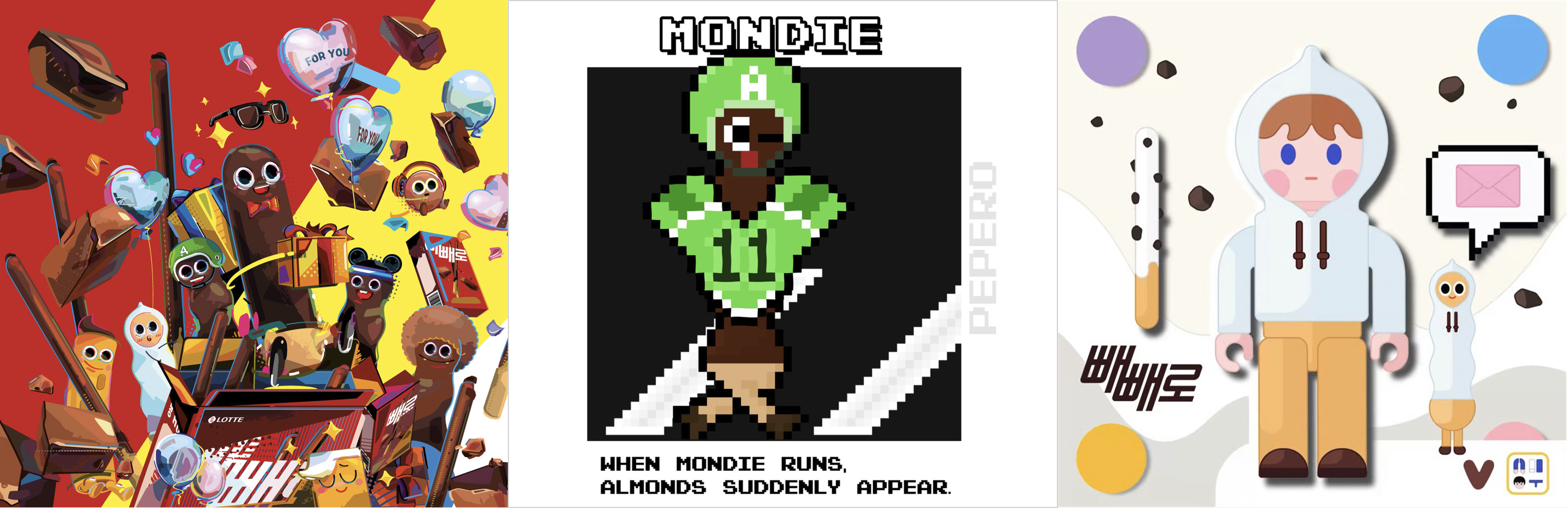 지난 5월 11일, 대홍기획이 제과업계 최초로 롯데제과 빼빼로의 캐릭터 ‘빼빼로프렌즈’를 활용한 NFT 캠페인을 진행했습니다. 국민 초코과자 빼빼로의 브랜드 가치를 더욱 높이고, 빼빼로만의 색다른 경험을 소비자에게 제공하기 위해 요즘 대세인 NFT를 마케팅에 활용한 것인데요. 실제로 3명의 아티스트가 만든 11종의 빼빼로프렌즈 NFT 121개는 카카오 블록체인 계열사 ‘그라운드X’의 NFT 유통 서비스 ‘클립 드롭스’를 통해 판매됐고 판매 시작 5분 만에 완판 기록을 세우며 뜨거운 인기를 입증했습니다.