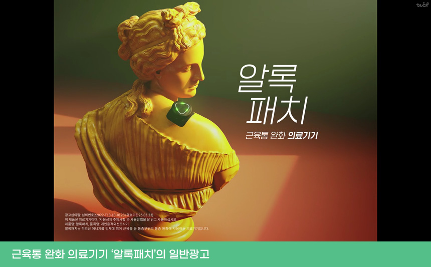 운동하면서 무리했는지 안 그래도 요즘 손목이 시큰거려서 ‘가방에 넣어 다니면서 일할 때 붙이면 좋겠군’ 생각하고 있는데, 김혜수 씨가 도도하게 앉아 ‘이건 의료기기야’, ‘쫴’라고 말하는 광고가 나온다. ‘아, 아까 본 그 안마기기가 알록패치라는 제품이고, 그냥 안마기기가 아니라 의료기기구나.’ TV광고(이하 ‘일반광고’)를 통해 제품에 대한 정보를 좀 더 알게 됐다.