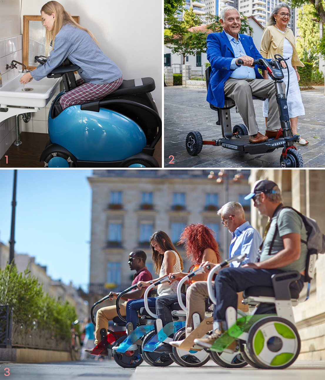 시니어를 위한 이동수단 역시 발전을 거듭하고 있다. 일본의 실용 로보틱 솔루션 기업 테무스쿠(tmsuk)가 만든 로뎀(Rodem)은 실내 이동장치로 고령자나 보호자의 부담을 덜어주도록 설계됐다. 다리를 들거나 일어서서 올라타지 않아도 기기를 소파나 침대 등과 연결한 상태에서 손쉽게 탑승할 수 있다. 높이가 조절돼 집안에서도 앉은 채 이동하거나 활동이 가능하다.