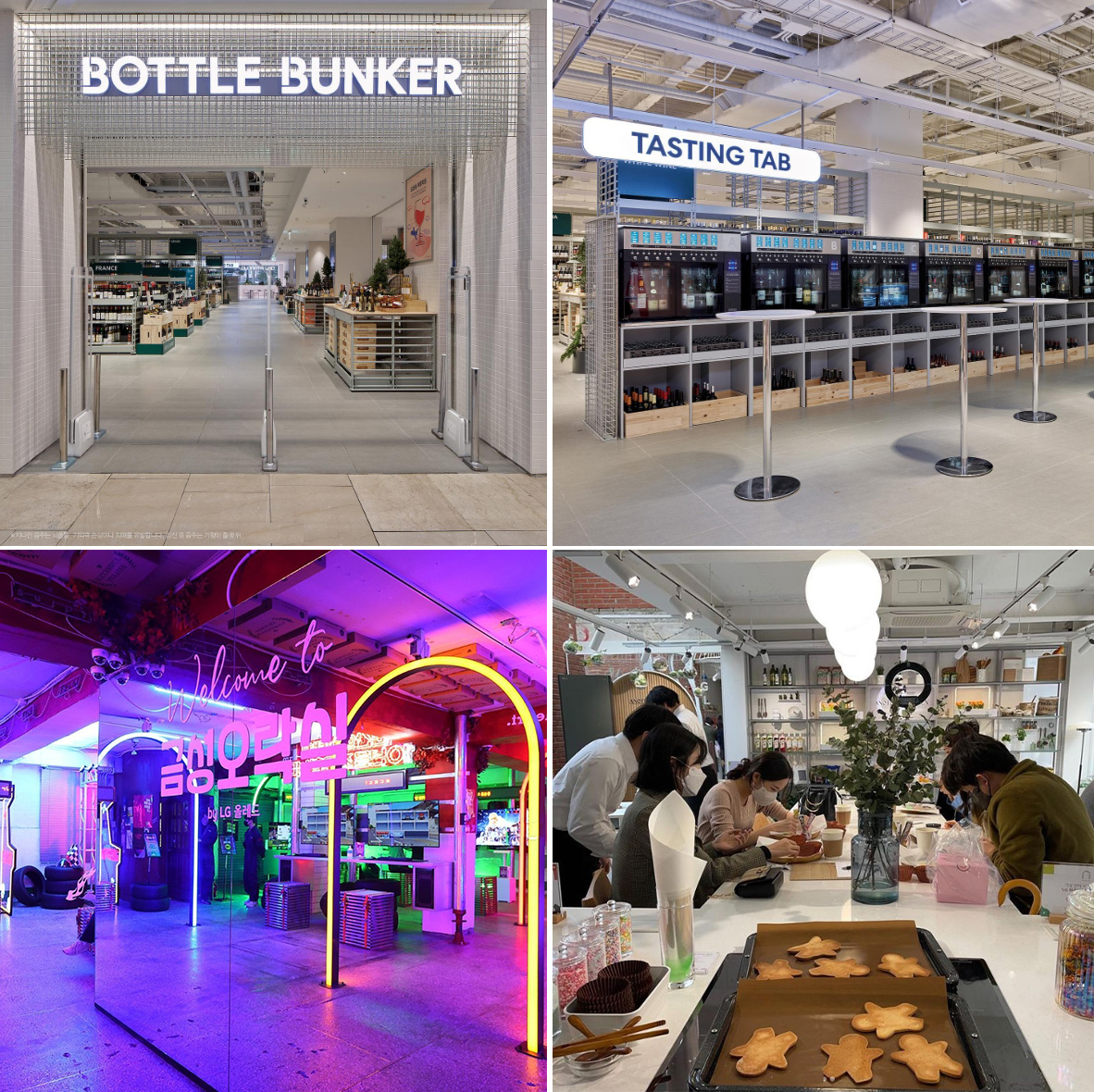 리뉴얼과 동시에 화제가 된 롯데마트 제타플렉스점은 400여 평에 달하는 국내 최대 체험형 와인매장 ‘보틀벙커’를 조성했다. 이 역시 온라인이 할 수 없는 것에 집중한 결과다. 왜 와인이었을까? 주류라는 품목 자체가 온라인에서 판매 금지돼 오직 오프라인만이 줄 수 있는 매력을 찾은 것으로 볼 수 있다. 여기에 체험형 요소를 결합해 ‘테이스팅 탭’이라는 시음 공간을 별도로 마련해 경험의 극대화를 실현했다. ‘국내 최대 규모의 와인 체험 공간’이라는 강력한 메시지를 선점하며 롯데가 와인시장을 리딩한다는 이미지까지 보여줄 수 있었던 것도 오프라인이라 더 가시적일 수 있다.