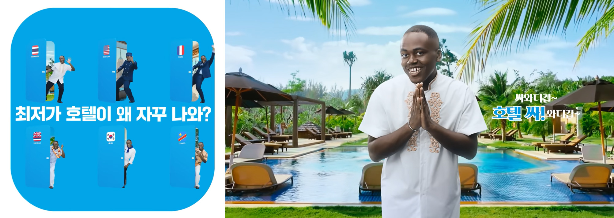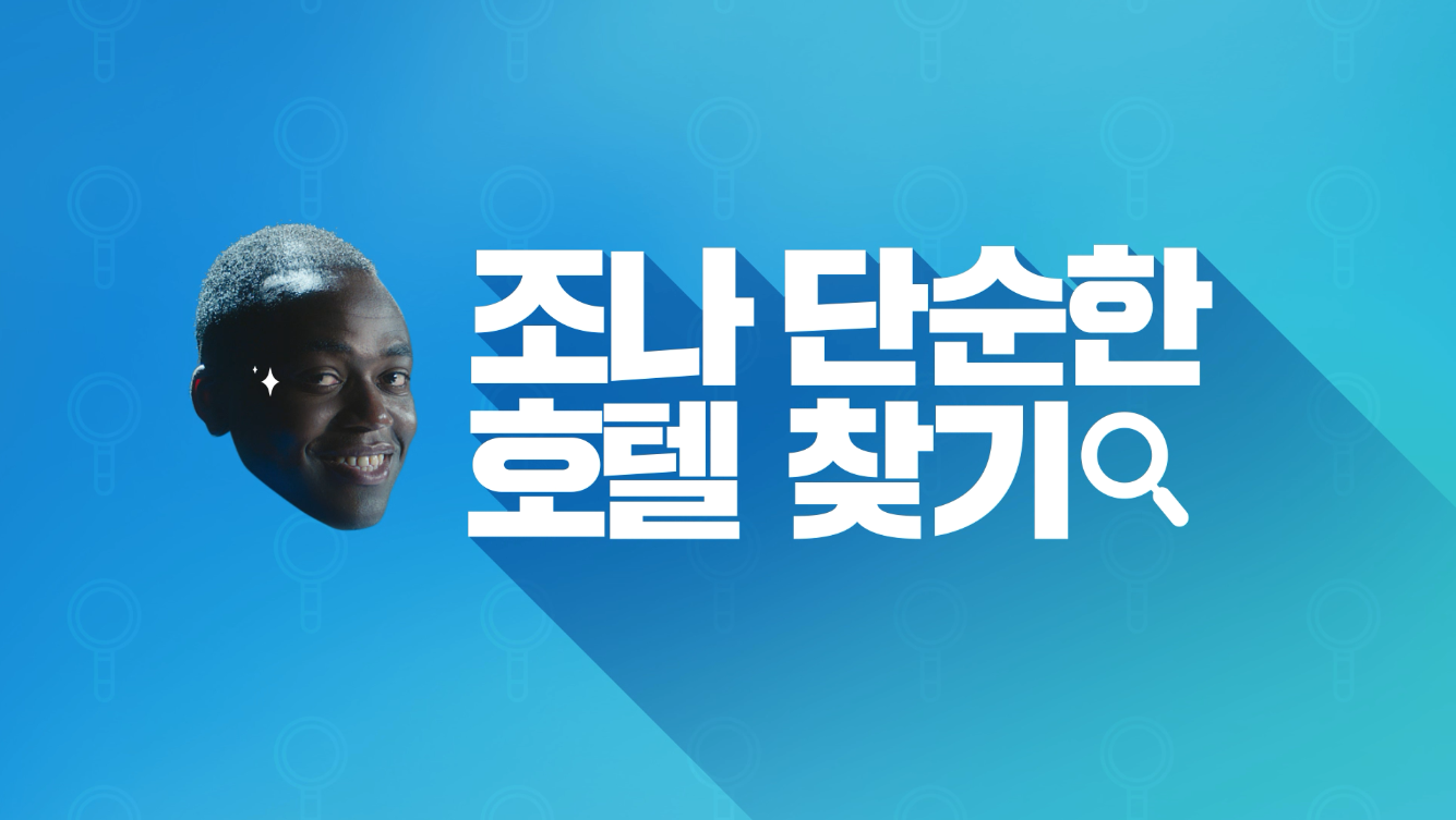 MSP 브랜드인 호텔스컴바인은 알아서 경쟁시켜 최저가를 찾아줍니다. 머리 아프게 이 앱, 저 앱을 둘러보지 않아도 되죠. 따라서 ‘여행 앱을 모아서 경쟁시키는 여행 숙박 플랫폼’이라는 메시지로 호텔스컴바인을 선택해야 하는 명분을 제시했습니다. 모델로는 MZ세대에게 새롭게 떠오르는 콩고 왕자 조나단 씨를 제안했습니다. 이렇게 ‘조나 단순한 호텔 찾기’라는 전략 의도를 잘 담아낸 신규 크리에이티브 소재가 탄생했습니다.