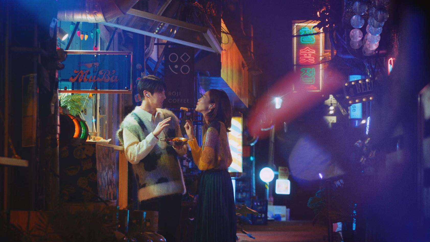 거리두기가 해제되며 MZ 타깃 광고가 대부분 신나고 시끌벅적한 요즘, 한 템포 차분하게 감상할 수 있는 감성적인 광고가 오히려 돋보이겠다는 것이 제작팀의 노림수였습니다. ‘서울의 밤’ 컨셉은 아이폰의 개선된 저조도 촬영 기능을 충실히 보여주면서도, 매일 지나던 장소들을 이국적이고 낭만적으로 담으며 아이폰만의 감성을 보여줍니다. 이 광고의 또 다른 모델이 되어준 BGM 잔나비의 <밤의 공원>은 낭만적이면서도 웅장한 사운드와 아름다운 가사로 밤거리 연인의 모습에 서사를 부여하며 영상미를 배가하는 중요한 역할을 합니다.