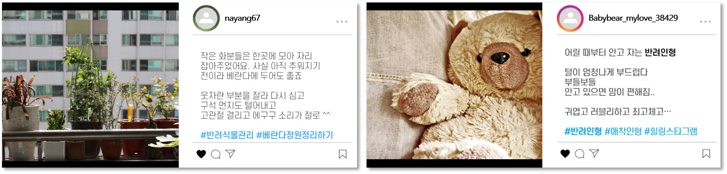 이들은 과연 찰나의 유행어로 스쳐 지나가는 현상일까? 소셜 공간에서는 반려 대상을 가벼운 장난이나 농담처럼 언급하기도 하지만 본인의 생각이나 고충을 진지하게 이야기하는 등 심리적으로 의지하는 관계에서 나타나는 행동을 보이기도 한다. ‘반려’에 대한 언급은 소셜상의 단순한 언어유희만은 아니다. 대홍기획의 조사에 따르면 사람들은 현실에서도 새로운 반려 대상과 친밀한 관계를 맺고 단순히 돌보거나 제품을 이용하는 것 이상의 풍부한 정서적 경험을 하며, 이를 통해 우울, 외로움 개선 등 심리적 이득을 취하는 것으로 나타났다. 이를 통해 소셜상 언급된 ‘반려’는 단순한 밈이나 표현이 아닌 밀착된 관계에 기반하는 의미 있는 현상임을 알 수 있다.