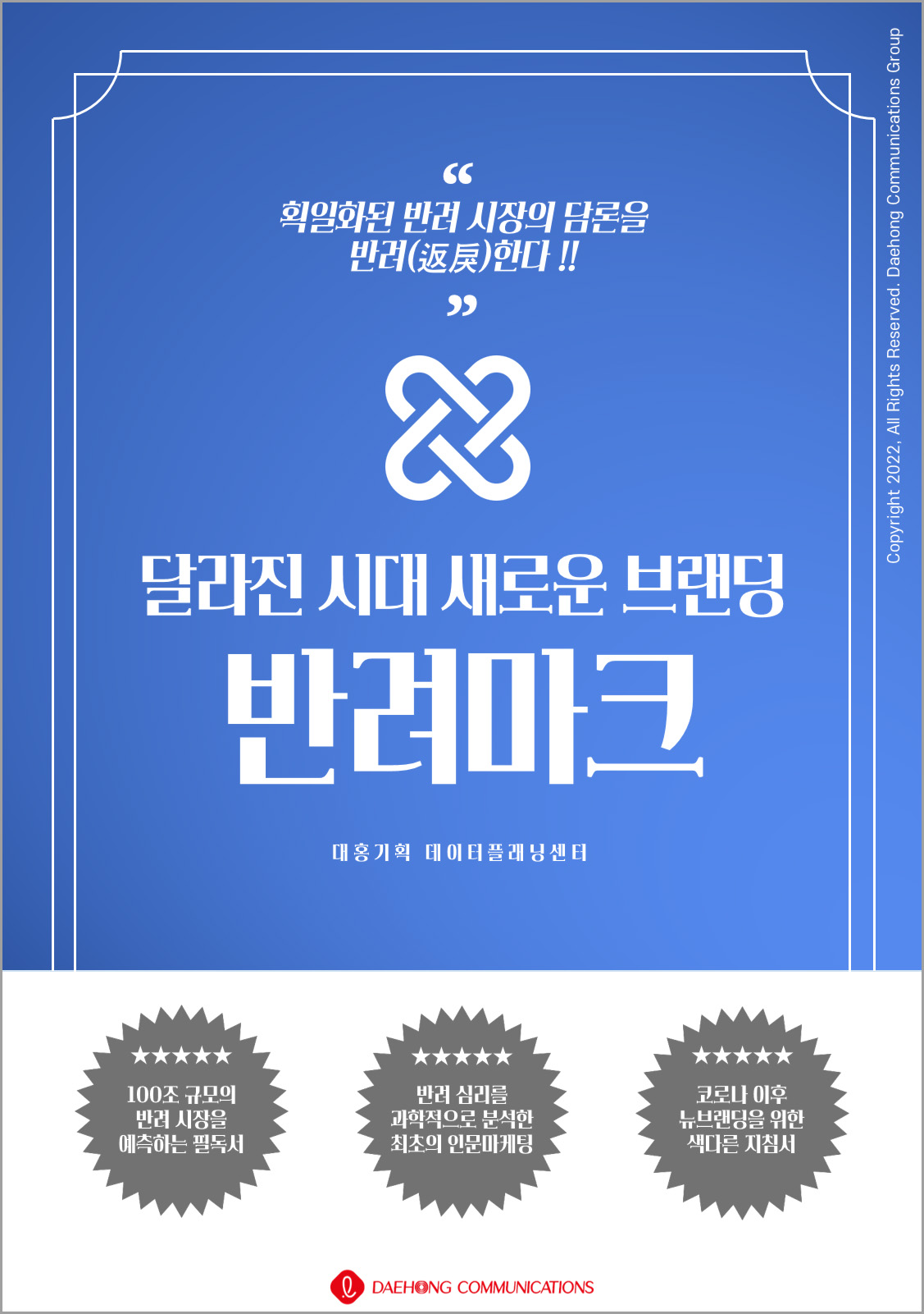 대홍기획이 코로나 팬데믹을 거치며 증가한 시대 트렌드 ‘반려’에 주목해 그 개념을 세분화, 구체화해 마케팅과 브랜딩에 접목할 새로운 방법론을 담은 <달라진 시대 새로운 브랜딩, 반려마크>를 출간했다.