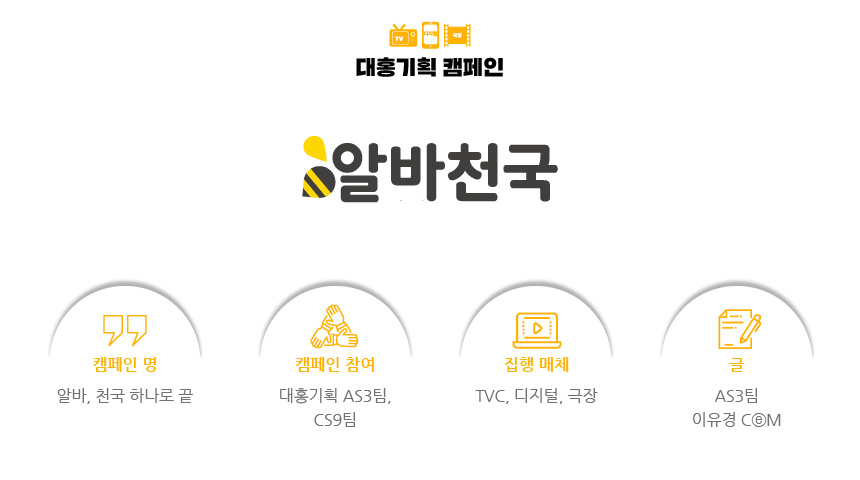 알바 시장이 앞으로 어떻게 변할지는 알 수 없습니다. 그러나 알바천국 광고 안에서 알바생들이 밝은 표정을 짓는 것처럼 늘 활력 넘치기를 기대합니다. 이번 캠페인을 통해 알바천국이 전달하고자 한 긍정적인 메시지를 광고로 함께 느껴보시길 바라며 대세 알바천국의 향후 행보에도 많은 관심 부탁드립니다.