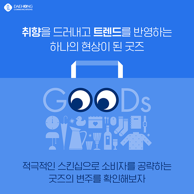 DIGGING/Trend 굿즈 좋아해? Daehong 2023. 3. 17. 14:33 공유하기 게시글 관리 대홍기획 매거진입니다. 저작자표시 비영리 변경금지 (새창열림) 'DIGGING > Trend' 카테고리의 다른 글 알파키즈의 소비 (0) 2023.04.12 말하자면 (0) 2023.03.21 럭셔리의 맛 (0) 2023.02.22 빛나라 아이돌 (0) 2023.02.21 탈경계의 예술가 (0) 2023.01.19 'DIGGING/Trend' Related Articles 알파키즈의 소비 말하자면 럭셔리의 맛 빛나라 아이돌