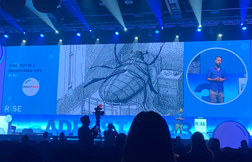 가장 인상 깊었던 건 마지막 날의 마지막 강연이었다. 이번 ADFEST의 심사위원장이자 Impact BBDO의 CCO인 Ali Rez가 <RISE>라는 테마에 어울리는 타이틀을 들고 강단에 올랐다. <Rise, But in a Memorable Way> 직역하자면 <떠오르자, 대신 기억에 남도록>으로 프레젠테이션 방식이 독특했다. 카프카의 단편소설 『변신』의 주인공 그레고르 잠자를 강연 주인공으로 내세우며 기억에 남는 임팩트 충만한 크리에이티브에 관해 설명하기 시작했다.