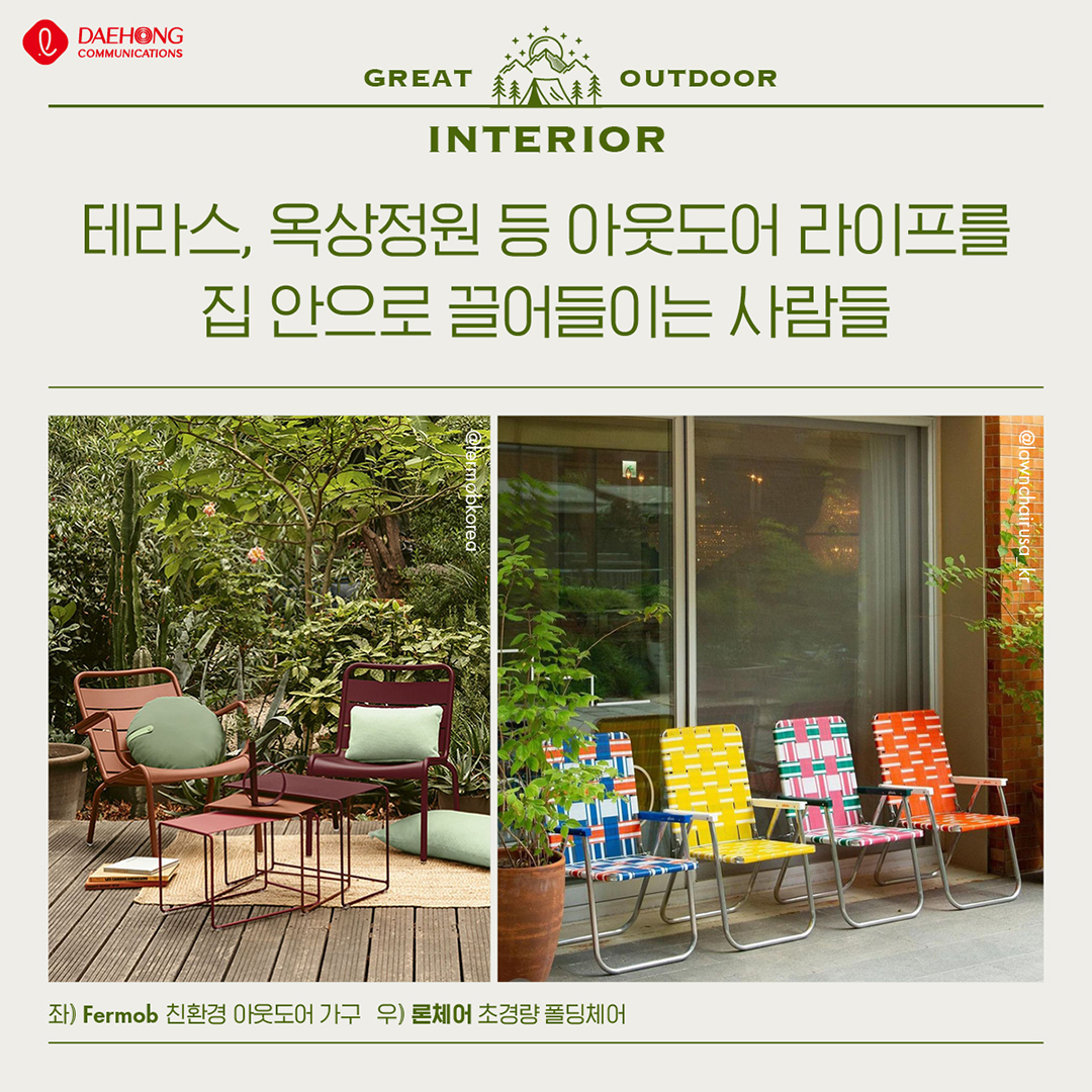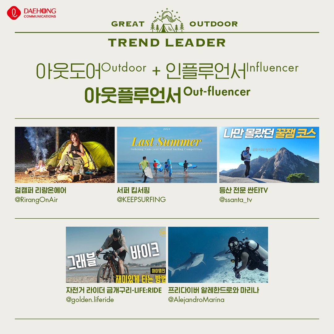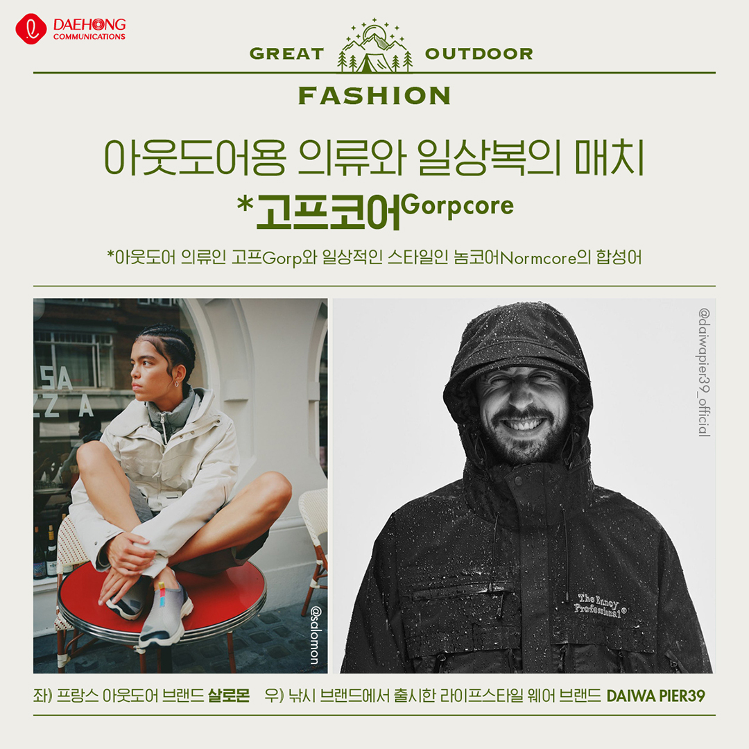 DIGGING/Trend 그레이트 아웃도어 Daehong 2023. 5. 24. 14:13 공유하기 게시글 관리 대홍기획 매거진입니다. 저작자표시 비영리 변경금지 (새창열림) 'DIGGING > Trend' 카테고리의 다른 글 전 세계의 식탁에 (0) 2023.06.23 새로운 관계 확장 트렌드 (0) 2023.06.21 축제의 계절 (0) 2023.05.19 알파키즈의 소비 (0) 2023.04.12 말하자면 (0) 2023.03.21 'DIGGING/Trend' Related Articles 전 세계의 식탁에 새로운 관계 확장 트렌드 축제의 계절 알파키즈의 소비