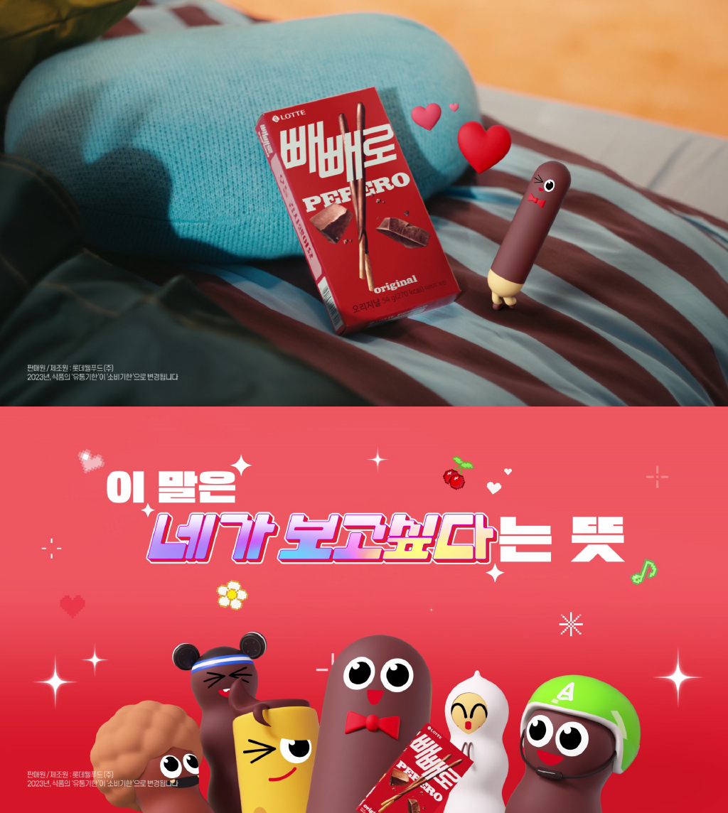 이번 2023년 빼빼로의 새로운 캠페인 컨셉은 ‘우리 마음 빼빼로로 말해요(Say Hello with PEPERO)’ 입니다. 저마다의 다양한 상황 속에 간직한 마음을 빼빼로로 가볍고 쉽게 전달할 수 있다는 의미가 담겼지요. 또한 빼빼로는 국내 과자 브랜드 중 유일하게 서로의 마음과 마음을 이어주는 매개체와 같은 역할을 하고 있어 11월 11일 빼빼로데이뿐만 아니라 일상에서도 마음을 나누고 싶은 사람들에게 그들만의 언어가 되어주고자 했습니다.