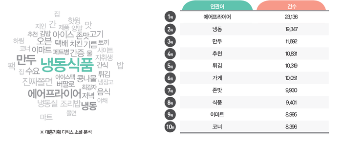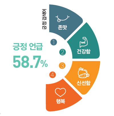냉동식품에 대한 이미지는 전과 달라졌다. 소셜 데이터 분석 결과 ‘냉동식품’에 대한 긍정적 언급은 58.7%! <존맛> <행복> <건강한> <신선한> 등, 기존 상식 밖의 감성어가 다수 등장했다. 냉동/간편조리식에 대한 더 자세한 목소리를 들어보자. 롯데멤버스 리서치 플랫폼 라임분석 결과, 간편조리식품의 장점으로 ‘식당에 가지 않아도 집에서 요리를 즐길 수 있음’과 ‘쉽게 요리할 수 있음’이 높게 나타났다. 식당에 가지 않아도, 집에서 쉽게 요리할 수 있다는 것이 포인트. ‘사먹는’ 집밥과 ‘해먹는’ 집밥의 두 장점이 합해진 것이다.