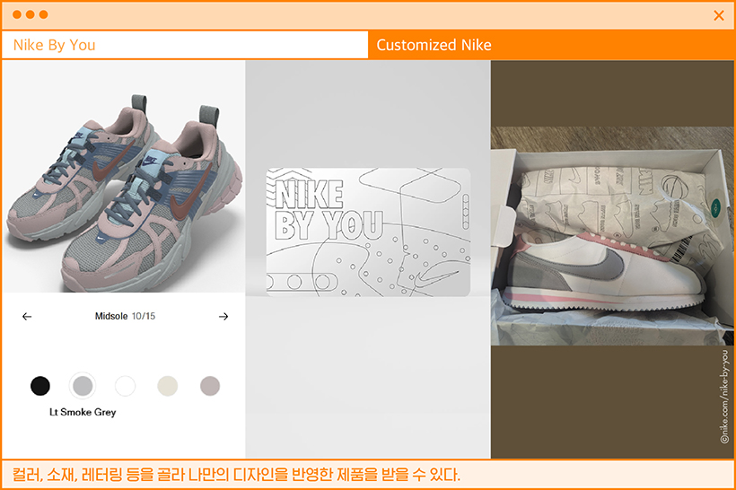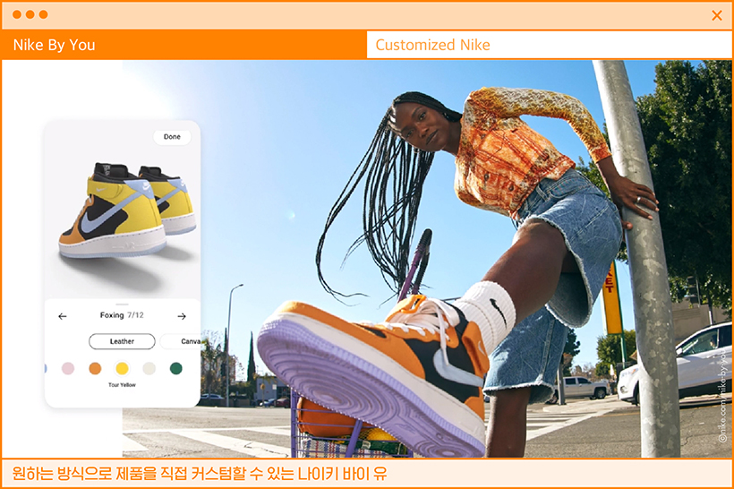 조만간 한국에도 나이키 바이 유 서비스가 정식 런칭한다는 소문이 있으니, 세상에 하나뿐인 나이키 신발을 원한다면 눈여겨보자.