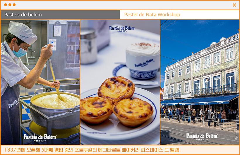 나타의 유래는 300년 전으로 올라간다. 대항해시대 포르투갈의 탐험가 바스쿠 다 가마의 귀환을 기념해 만든 리스본의 제로니무스 수도원에서 제복에 빳빳하게 풀을 먹이기 위해 계란 흰자의 녹말을 사용했는데, 남은 노른자를 처리하기 위해 나타를 만들게 됐다고 한다(도대체 얼마나 빳빳하게 했던 걸까?). 이후 이 레시피를 한 가족이 전수받아 1837년 ‘파스테이스 드 벨렘(Pasteis de belem)’이라는 베이커리가 문을 열었다. 하루에 2~3만 개의 나타가 팔린다는 파스테이스 드 벨렘은 언제나 줄이 길게 늘어서 있는데, 관광객은 물론이고 현지인도 인정하는 맛집이다. 며느리도 모르는 원조집의 비밀을 아는 사람은 레시피 전수자, 오너, 공장장 단 세 명. 나타를 만드는 공장에도 이 세 사람만이 들어갈 수 있다고 한다.