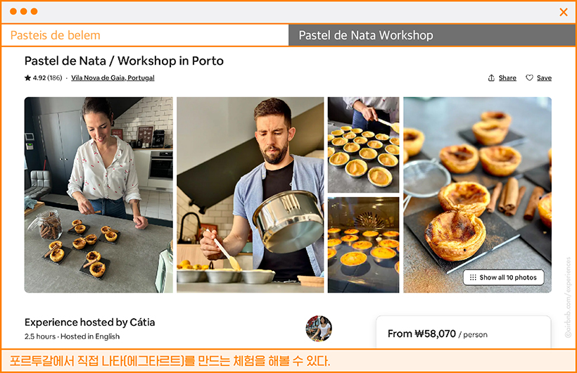 리스본에는 파스테이스 드 벨렘 외에도 다양한 나타 맛집이 있지만 이왕이면 180년 전통의 원조집을 방문해 보자. 보다 특별한 경험을 하고 싶다면 에어비앤비 트립을 통해 나타를 직접 만들어 볼 수 있다.