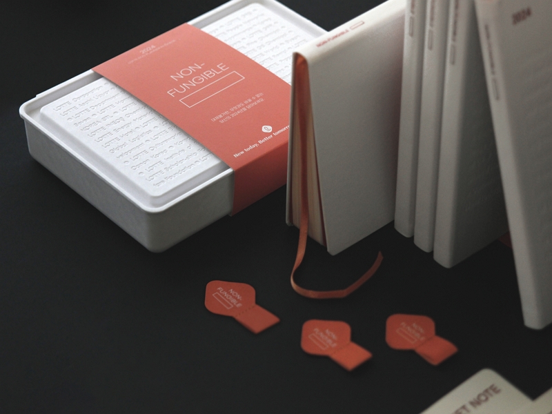 롯데 에코 플래너 패키지는 롯데 임직원과 고객에게 전달되는 스테이셔너리(캘린더, 다이어리 등) 세트로 2024 에코 플래너 패키지는 NON-FUNGIBLE(대체 불가능한)을 주제로 롯데그룹의 모든 임직원 각자의 존재가 대체 불가한 자산임을 보여주고 자긍심을 고취시킬 수 있는 메시지로 구성됐다. 100% 자연분해가 가능한 친환경 페이퍼몰드 패키지로 견고하고 미니멀한 감성을 표현했으며, 생분해성 한지 가죽을 접목한 다이어리 커버와 친환경 종이링 바인딩, 펜루프 등 ESG 경영철학을 짜임새 있게 전달했다.