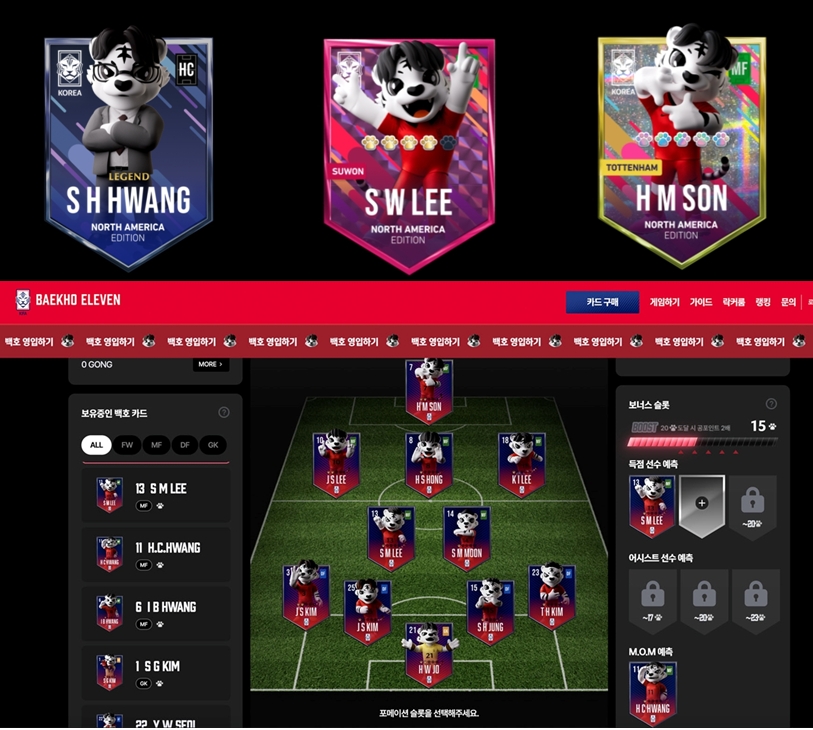 실제 국가대표 경기 결과와 <백호일레븐> 플랫폼이 연동돼 경기 관람에 더 몰입해 즐기게 돼요. 내 손으로 베스트11과 함께 득점 선수, 어시스트 선수까지 선정해 제출하고 나면 실제 경기를 볼 때 더욱 쫄깃한 마음이 들죠! 경기 전에는 다가오는 시합을 예측하는 즐거움이 있고, 경기를 볼 때는 <백호일레븐>에 제출한 선수들을 응원하는 열렬한 마음이 더해집니다. 또 경기가 종료된 후에는 내 스쿼드에 따라 공포인트를 받고 가족이나 친구들과 랭킹을 비교해보는 재미도 있어요.