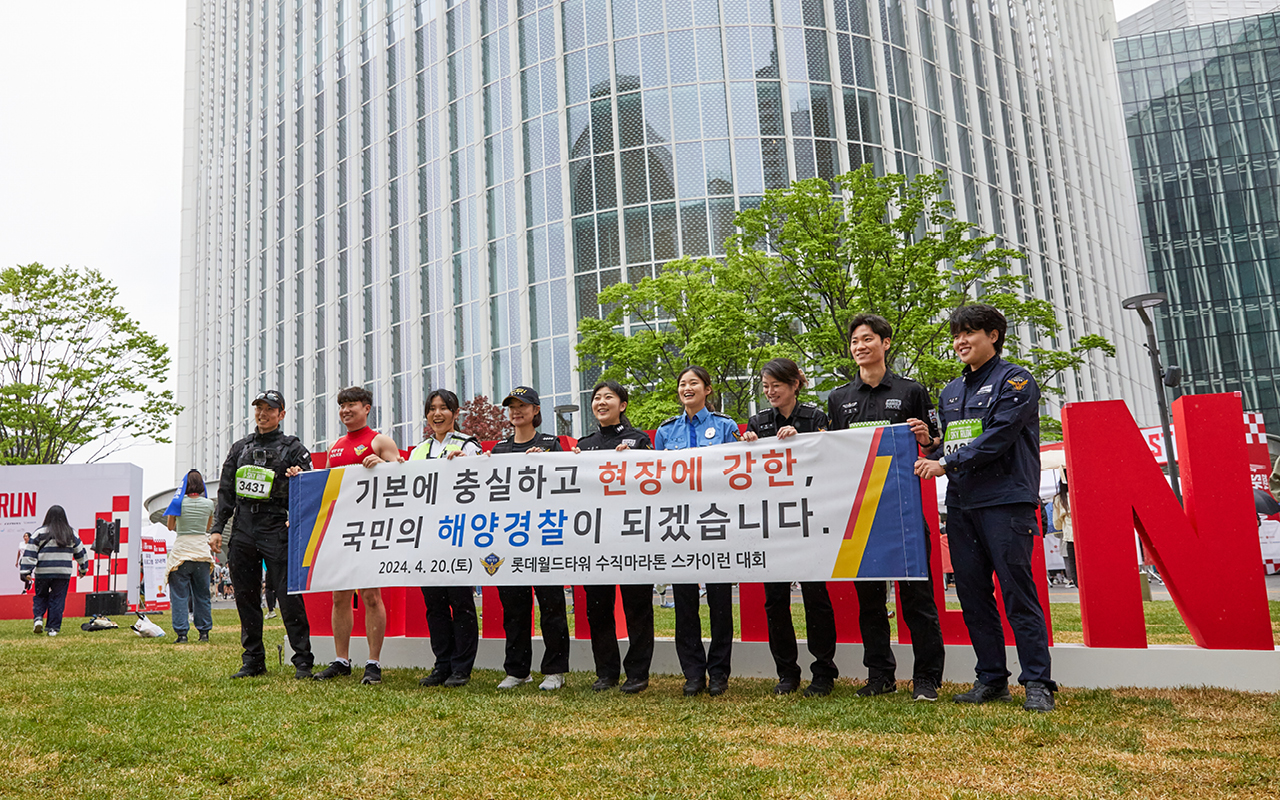좁은 계단에서 이뤄지다 보니 스카이런의 최우선 과제는 무엇보다도 안전입니다. 롯데의료재단 보바스병원에서 의사, 간호사 선생님들이 함께 해주시고 5대의 구급차와 매 20층 단위로 준비된 휴게공간마다 응급구조사와 간호사 선생님들이 배치됐습니다. 계단실 3개 층마다 한 명의 안전요원이 배치돼 참가자들의 안전을 살피기도 했습니다.