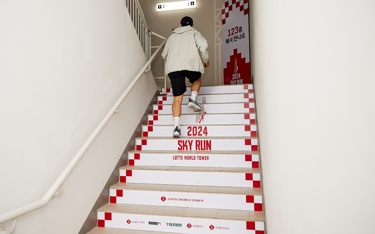 123층, 555m, 2,917개의 계단을 걸어 오를 수 있는 단 하루의 기회. <2024 롯데월드타워 스카이런>입니다. 대한민국의 랜드마크라 할 수 있는 롯데월드타워는 2017년 4월 3일 완공돼 오프닝 행사와 롯데그룹 50주년 기념식이 동시에 열렸습니다. 대망의 완공을 국내뿐만 아니라 전 세계에 알릴 수 있는 방법은 무엇일까? 고민하던 끝에 ‘롯데월드타워 불꽃축제’와 ‘롯데월드타워 SKY RUN’을 기획하게 됐습니다.
