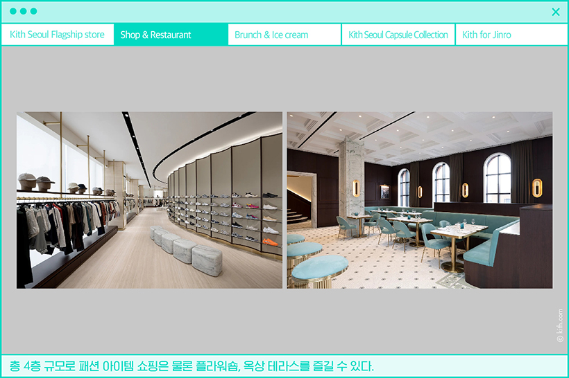 총 4층 규모의 KITH 서울은 전 세계 KITH 매장 중 최대 규모다. 신발과 의류, 라이프스타일, 키즈라인은 물론이고 뉴욕 소호의 브런치 맛집 사델스 앳 키스(Sadelle’s at KITH)와 블랙핑크 제니가 사랑하는 KITH의 자체 아이스크림 브랜드인 키스 트리츠(KITH Treats)도 만날 수 있다. 당분간은 웨이팅 지옥이 예상되지만, 조만간 깜짝 놀랄만한 브랜드와 협업한 KITH 트리츠를 맛볼 수 있기를 기대한다.