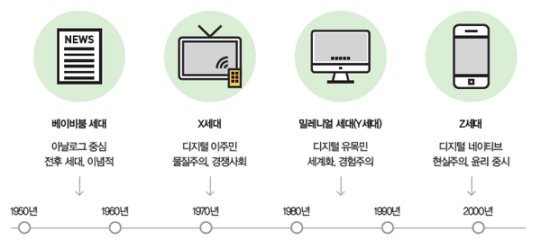 뛰어난 정보처리 능력과 글로벌 감각으로 무장한 Z세대가 사회 진출을 시작하고 있다. Z세대란 1995년 이후에 태어난 세대를 일컫는 수식어로, 2019년 기준 만 24세 이하인 이들은 대부분이 아직 학생이거나 이제 갓 직장 생활을 시작한 사회 초년생이다. 어려서부터 스마트폰과 컴퓨터를 사용하면서 자란 이들로 디지털 문화에 익숙해서 영국 이코노미스트는 스마트폰을 자유롭게 사용한다는 의미에서 ‘포노 사피엔스(Phono Sapiens)’로 명명했다. 이번 글에서 이러한 Z세대의 특징을 정리하고 이들에게 다가가기 위한 마케팅 방법을 찾아보도록 하겠다.