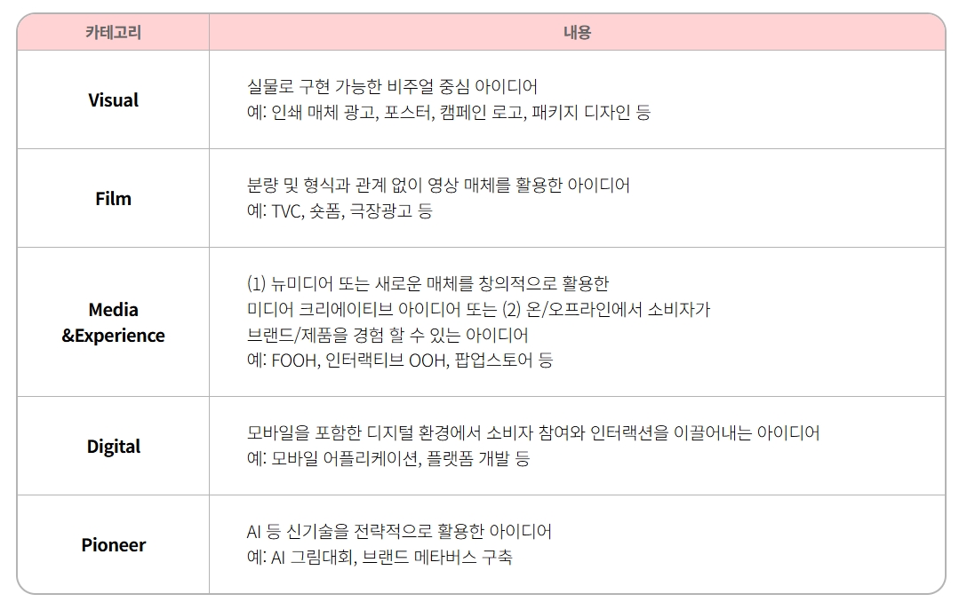 시상은 카테고리별 위너 5팀과 통합 그랑프리 1팀으로 총 6팀에 상금 2,500만 원이 수여된다. 올해 DCA에는 ▲ 롯데칠성 크러시 ▲ 롯데칠성 오트몬드 ▲ 롯데웰푸드 자일리톨껌 ▲ 롯데GRS 롯데리아 ▲ 롯데케미칼 ▲ 넥센타이어 ▲ SBI 저축은행 사이다뱅크 ▲ 셀퓨전씨 선스크린 ▲ 중외제약 프렌즈 아이드롭 ▲ 퍼지펭귄 등 잘파세대가 친근하게 다가갈 수 있는 브랜드가 과제로 제시됐다. 출품작 접수는 7월 22일부터 26일까지로 DCA 사이트에서 온라인으로 진행된다.