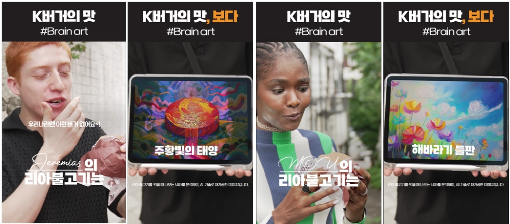 한국인이 표현하는 K-버거는 자연스럽고 익숙하며 언제 먹어도 맛있는 맛. 그럼 외국인이 K-버거를 먹으면 어떨까? 그래서 외국인에게 뇌파탐지기를 씌우고 먹게 했다. 놀랍게도 한국인이 느끼는 맛과 외국인이 느끼는 맛은 전혀 달랐다. 색다른 뇌파를 보이는 외국인과 평온하고 잔잔한 뇌파를 보인 한국인의 차이! 그리고 그 뇌파를 AI를 통해 그림화했을 때도 완전히 다른 느낌의 작품이 나왔다. 우리에게 익숙한 K-버거(리아 불고기/새우)가 세계에서는 새로운 버거라니!