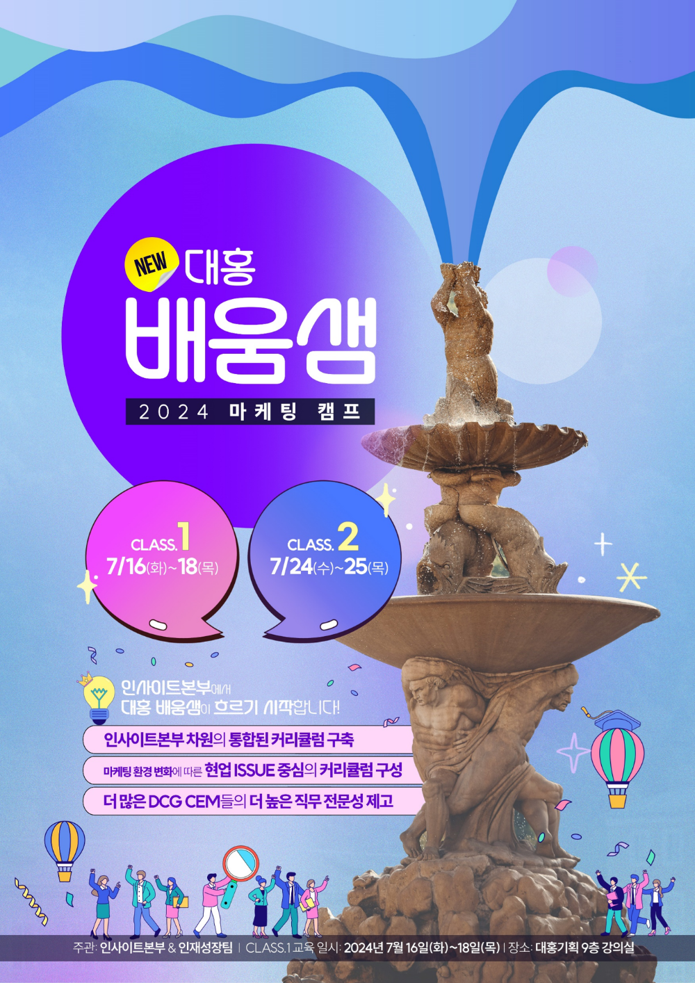 역대급 더위라고 하는 2024년 여름! 하지만 대홍 CⓔM들은 폭염 속에서 더위를 잊을 수 있는 시원한 배움의 ‘샘’을 만났다고 하는데요. 바로 <2024 대홍 배움샘>입니다.