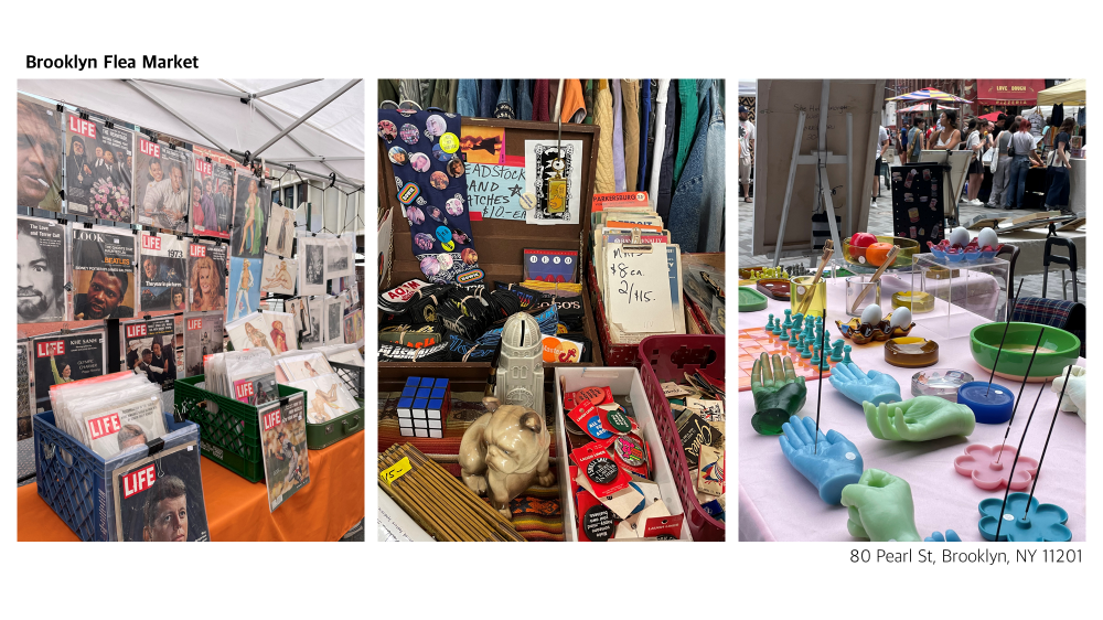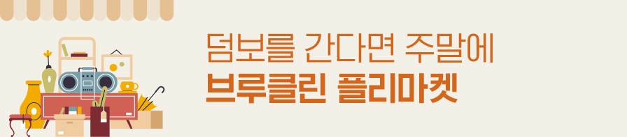 높게 치솟은 덤보 브릿지 앞에서 사진 찍는 건 빼놓을 수 없는 뉴욕 여행 코스 중 하나다. 사진만 찍고 가긴 아까우니 덤보 포토스팟 우측 길 너머에서 주말마다 열리는 브루클린 플리마켓도 구경해보는 걸 추천한다. 다양한 LP를 쌓아두고 디제잉하는 아저씨를 발견했다면 마켓 입구를 잘 찾은 것이다. 이곳에선 누구나 주말에 느지막이 일어나 커피 한 잔을 마시며 플리마켓을 거니는 모습을 연출할 수 있다. 길거리 가판대에 각자의 독특한 아이템을 전시해두고 취향을 나누는 모습은 흡사 영화 속 한 장면 같기도 하다. 우리가 태어나기 훨씬 전 발행된 라이프 잡지부터 브루클린에 사는 젊은 예술가가 만든 것 같은 인테리어 소품까지, 없는 게 없는 브루클린 플리마켓에서 서울과는 다른 매력을 느껴보시라.