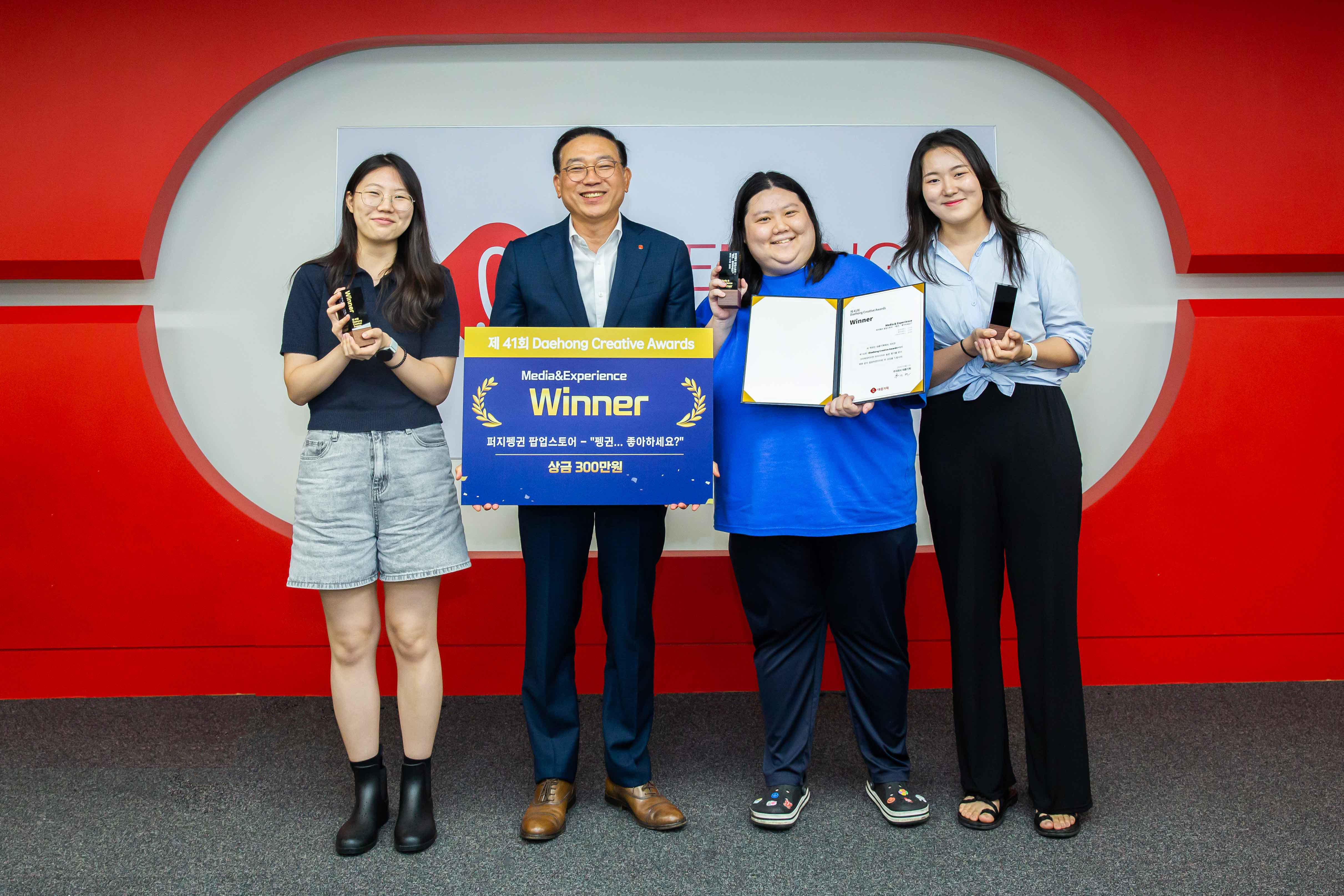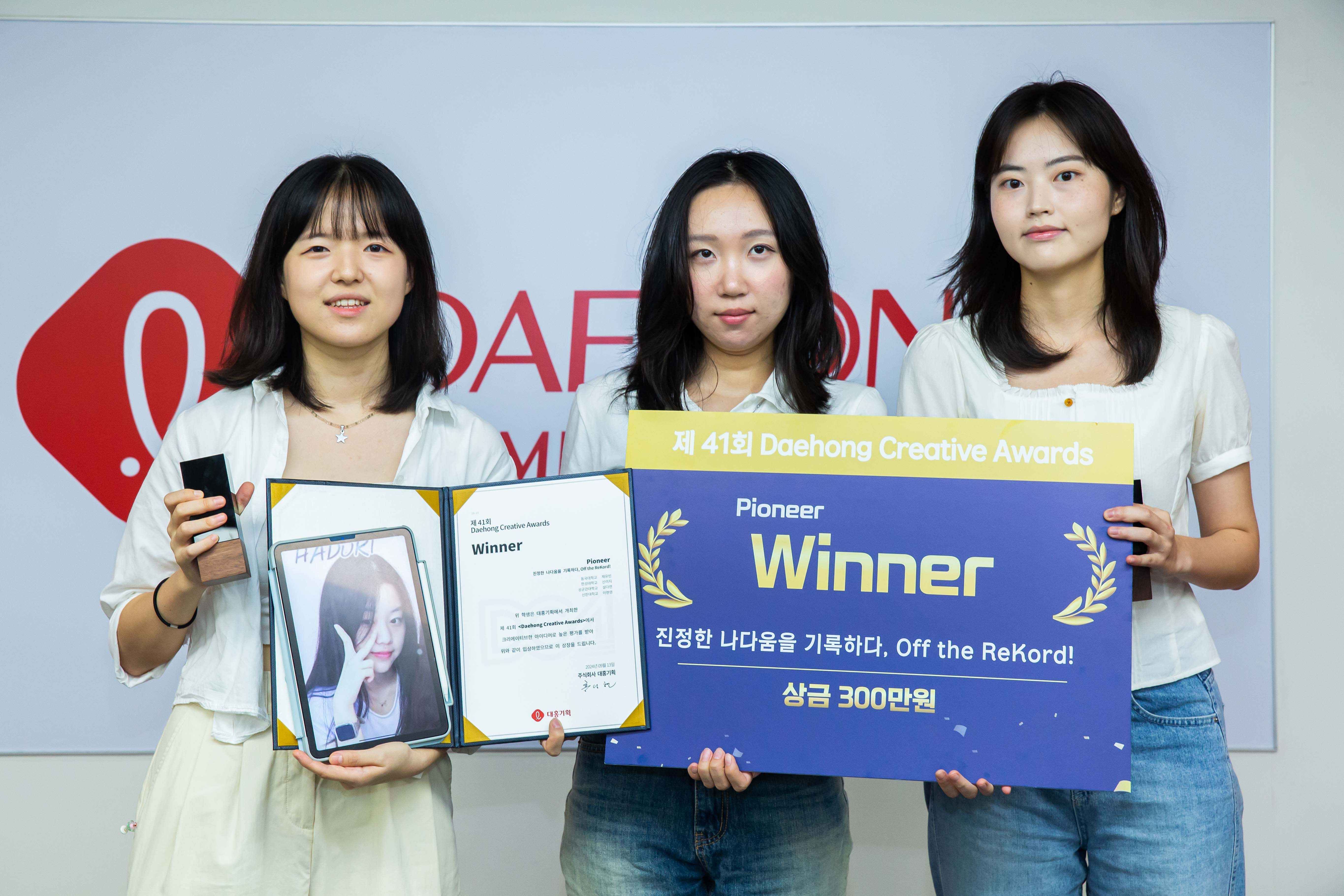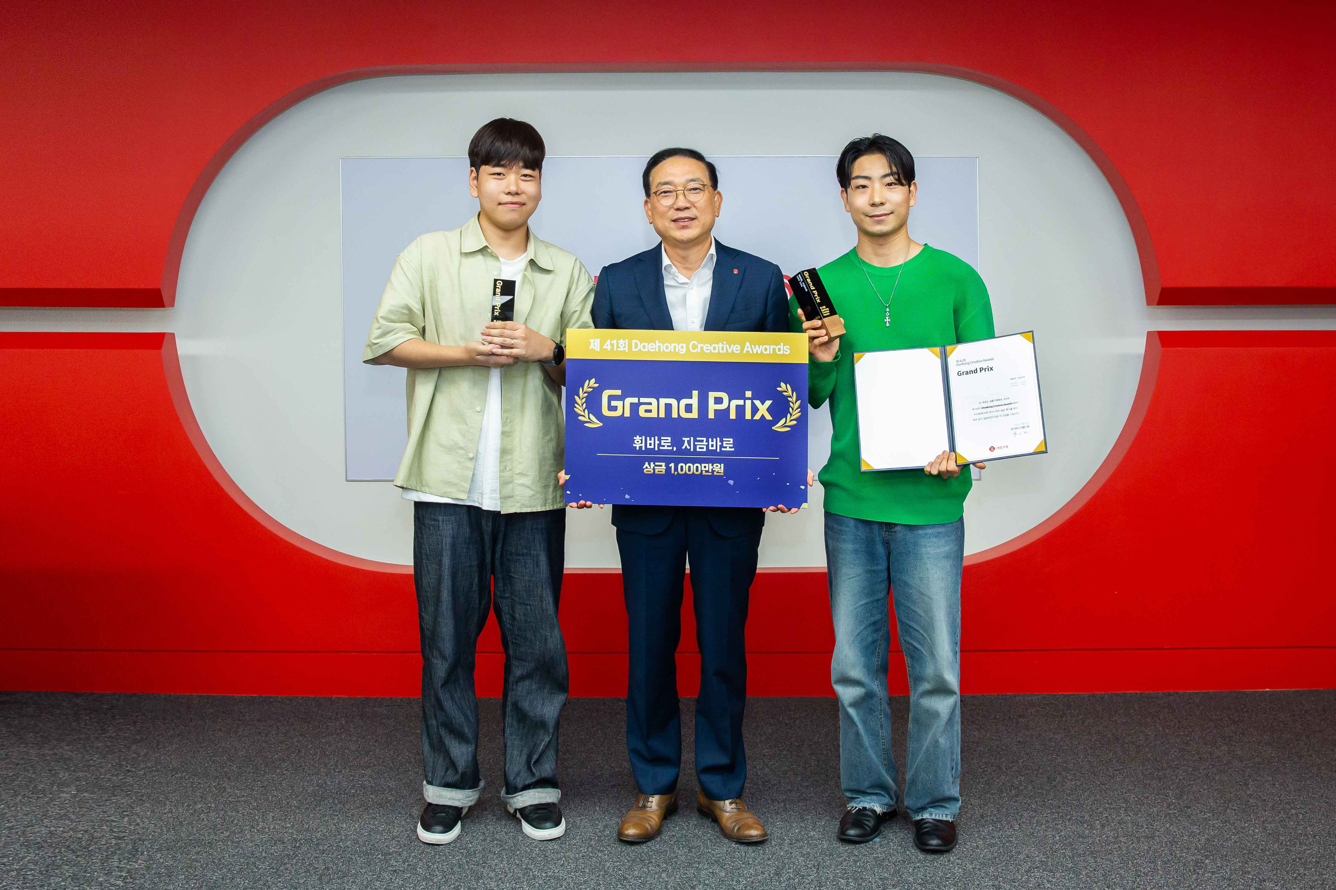 심사는 전년과 마찬가지로 예선 심사 1, 2차와 본선 심사로 최종 수상작을 가려냈습니다. 치열한 경쟁 끝에 올해 그랑프리의 영예는 인천대학교 남준형, 조형철 학생의 롯데웰푸드 자일리톨 아이디어 ‘휘바로, 지금바로’가 차지했습니다. 숏폼 콘텐츠에 최적화된 짧은 후킹 영상과 미드저니, Suno AI를 활용한 중독성 높은 CM송이 매력적인 작품인데요. 특히 남준형 학생은 작년에 ‘세나아’의 멘토링을 받았었기에 이번 수상이 더욱 뜻깊습니다. 9월 13일, 대홍기획에서 열린 시상식에 참여한 이들은 힘찬 박수와 환호 속에 그랑프리 수상의 기쁨을 만끽했습니다.
