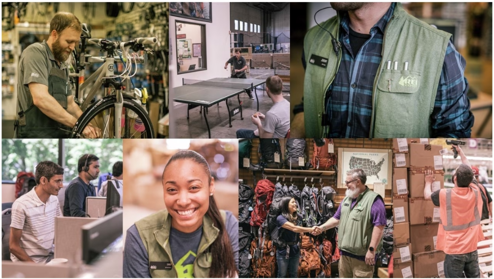 회사에 속한 직원들이 어떤 느낌을 받으며 일하는가. 기업의 온도를 결정하는 중요 요소다. REI 6대 사장 제리 스트리츠크는 “우린 출장도 그냥 가지 않는다. 신제품 품평을 하기 위해 조슈아 트리로 놀러가고, 카약을 타고 캘리포니아 남부 매장에 가거나, 산악자전거를 타고 협곡을 넘기도 한다”라고 밝혔다. REI는 1992년부터 성전환 수술 보험처리 등 성소수자 관련 혜택을 제공하고 여성의 승진에도 노력을 기울여 왔으며 CEO도 조합원들의 투표로 선출한다. 직원들은 한 달에 두 번 야외활동을 위한 유급 휴가를 받고 자발적으로 팀을 이뤄 야외활동을 즐긴다. 용품 및 렌탈 할인은 물론 액티비티 기획안이 선정되면 지원금도 제공한다. 같은 아웃도어지만 한국 MZ들이 그토록 혐오한다는 부장님발 ‘주말 체육대회’나 ‘등반 워크숍’과는 거리가 멀다.